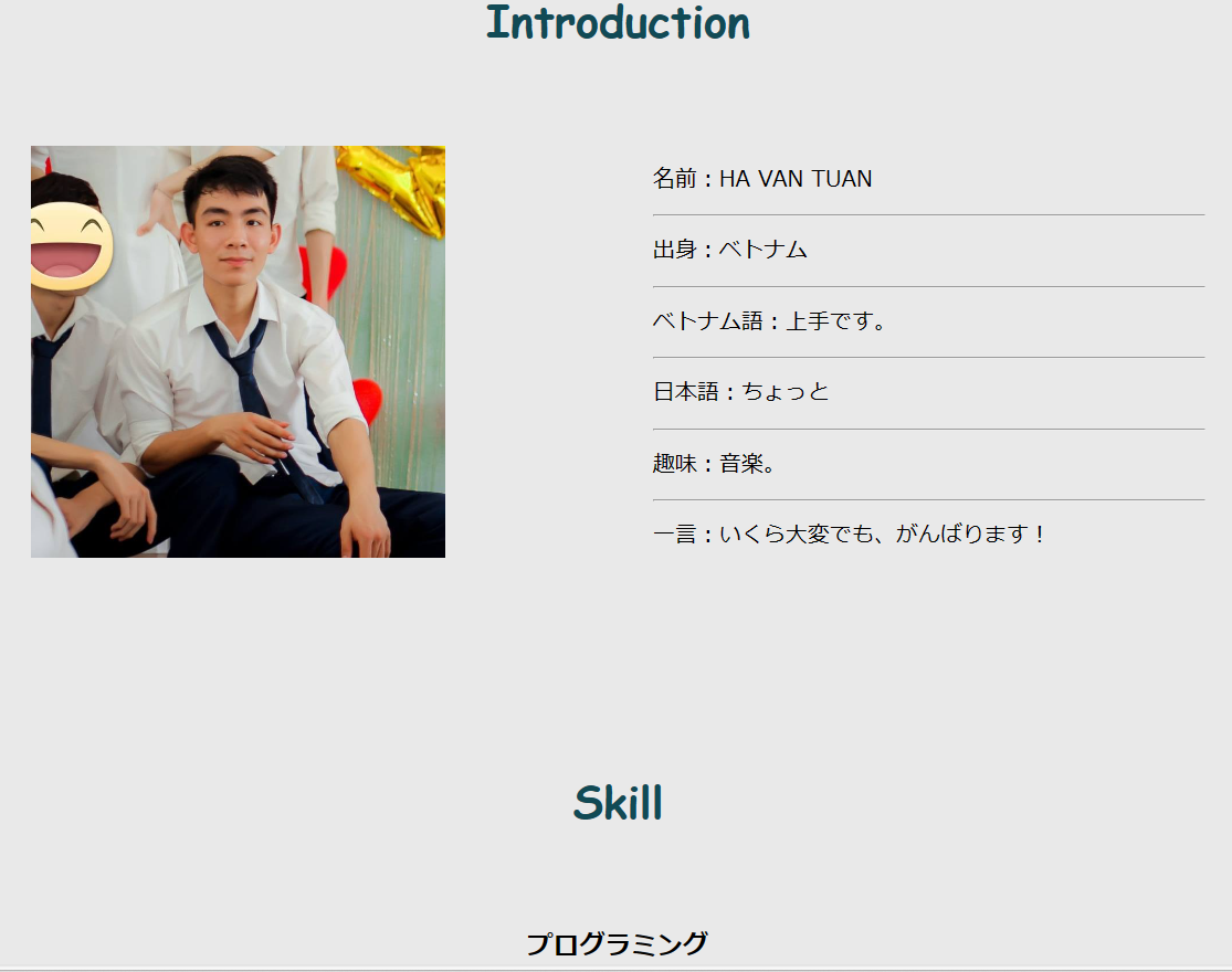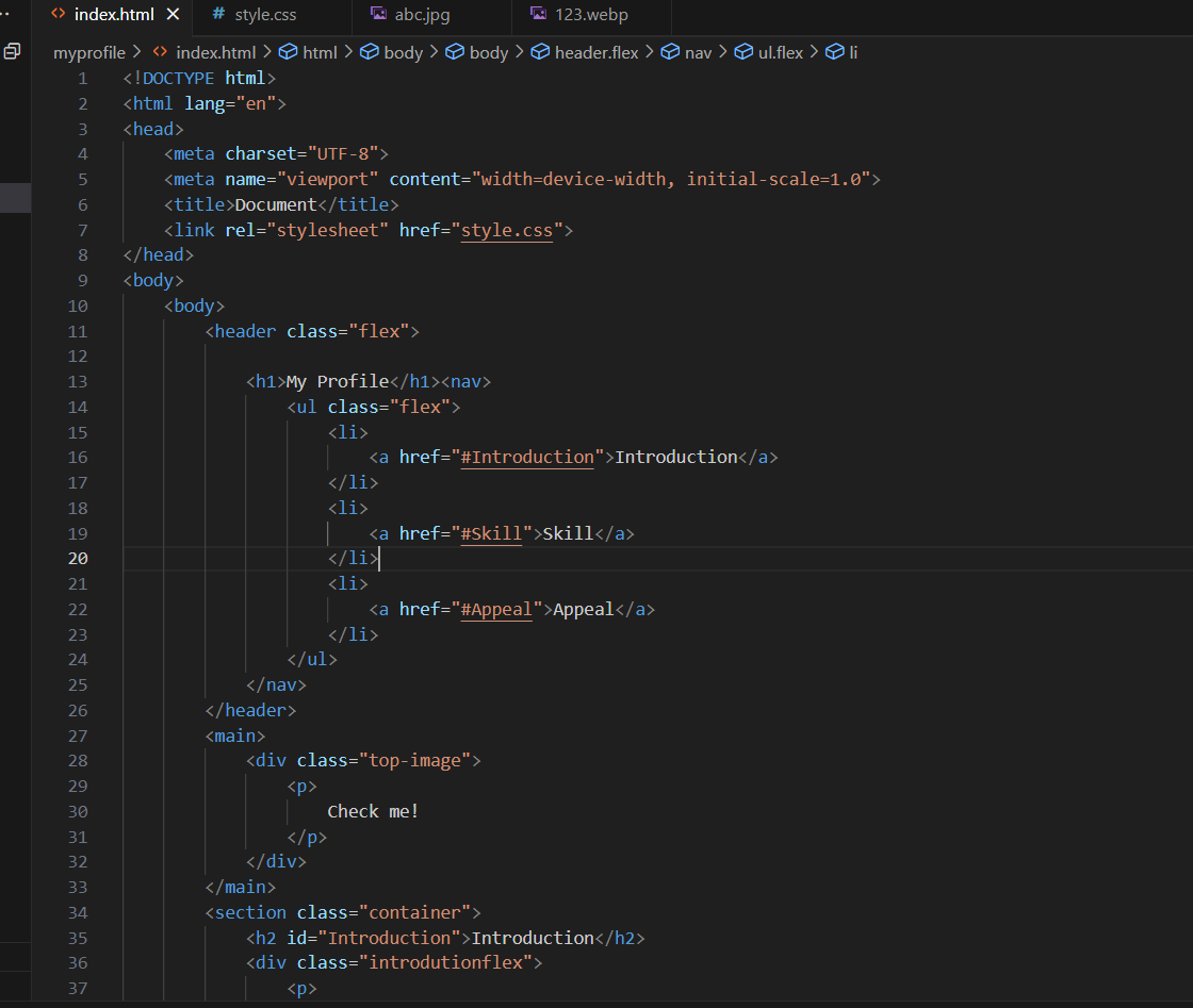 このHTMLファイルでは、プロフィールページの基本的な構造を作成しています。<header>要素内にページのタイトルがあります。プロフィール情報は<div>要素の中に配置され、プロフィール写真は<img>要素を使用して表示されています。CSSスタイルを使用して、ページの外観を整えています。