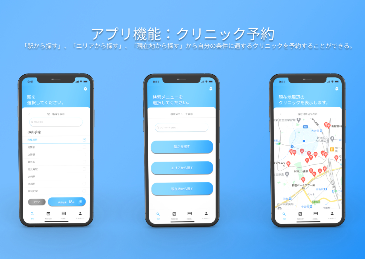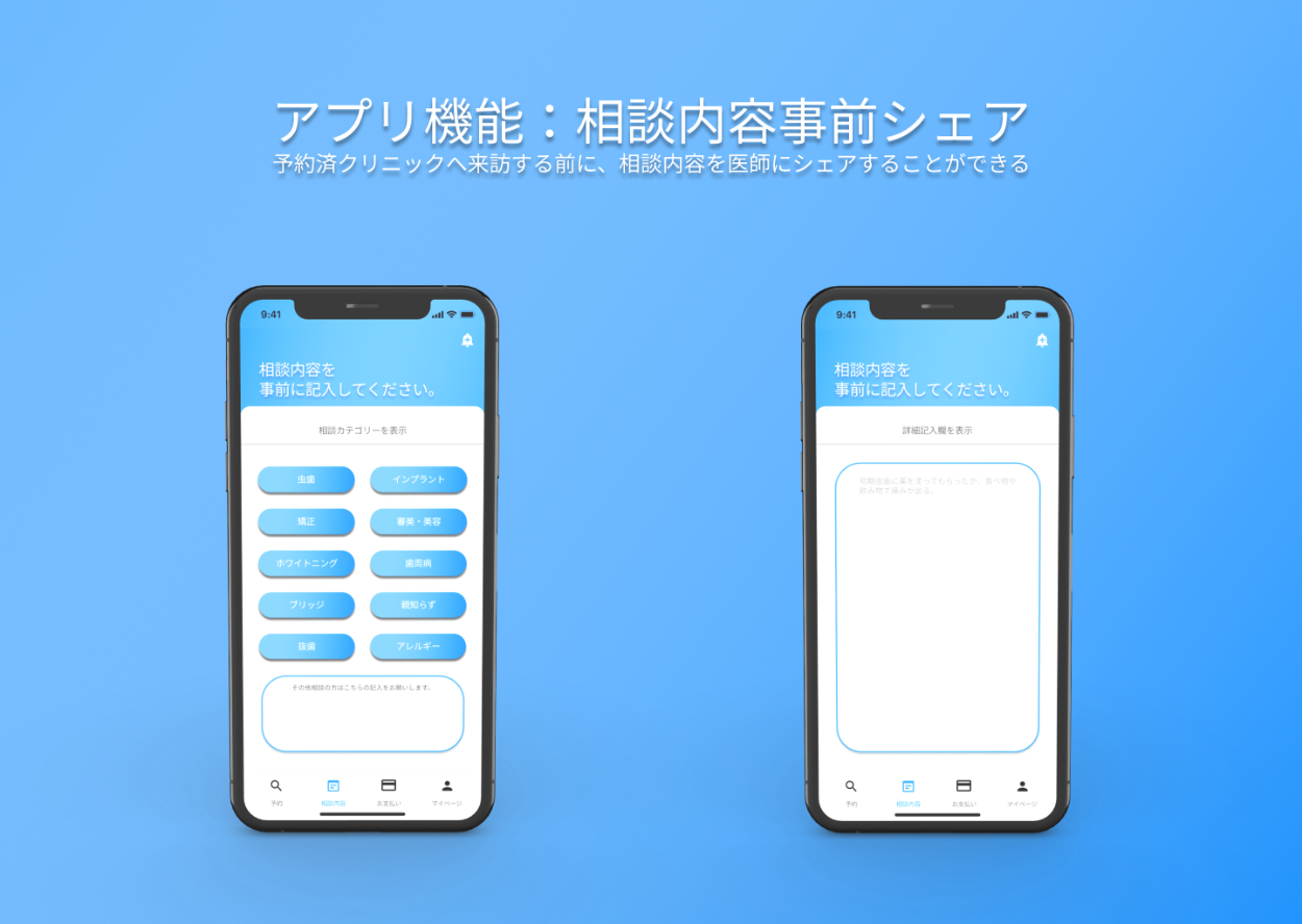 サービス内容)ユーザーが自分の条件に合った歯科医院を検索・予約まで行うことができるサービス、歯科医院の診察効率を最適化するサービス