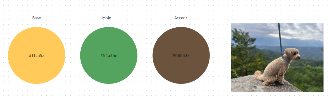 ・ペルソナのイメージカラーである、ワンちゃんと健康的な未来を想像させる、生命の「みどり」を基調にして、 ベースカラーは茶色に。土を連想させる茶、葉っぱを連想させる緑、太陽を連想させるオレンジと、自然界で目にする色を大事にした。