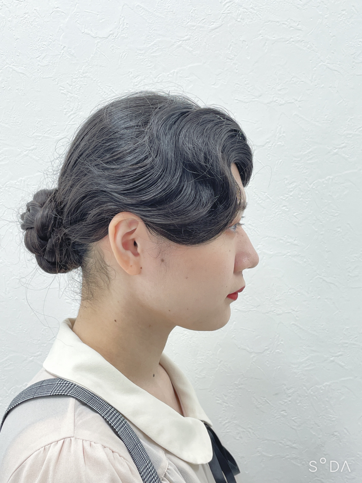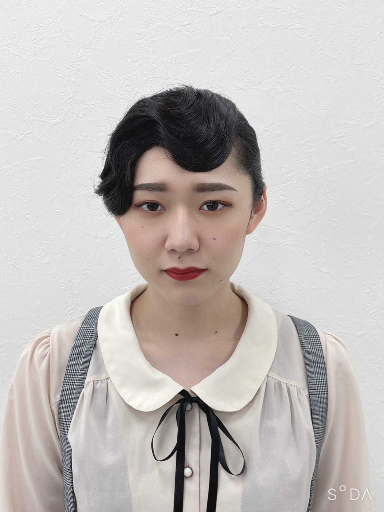 フィンガーウェーブを取り入れると言う課題でヘアメイクを考えこの作品を作りました。