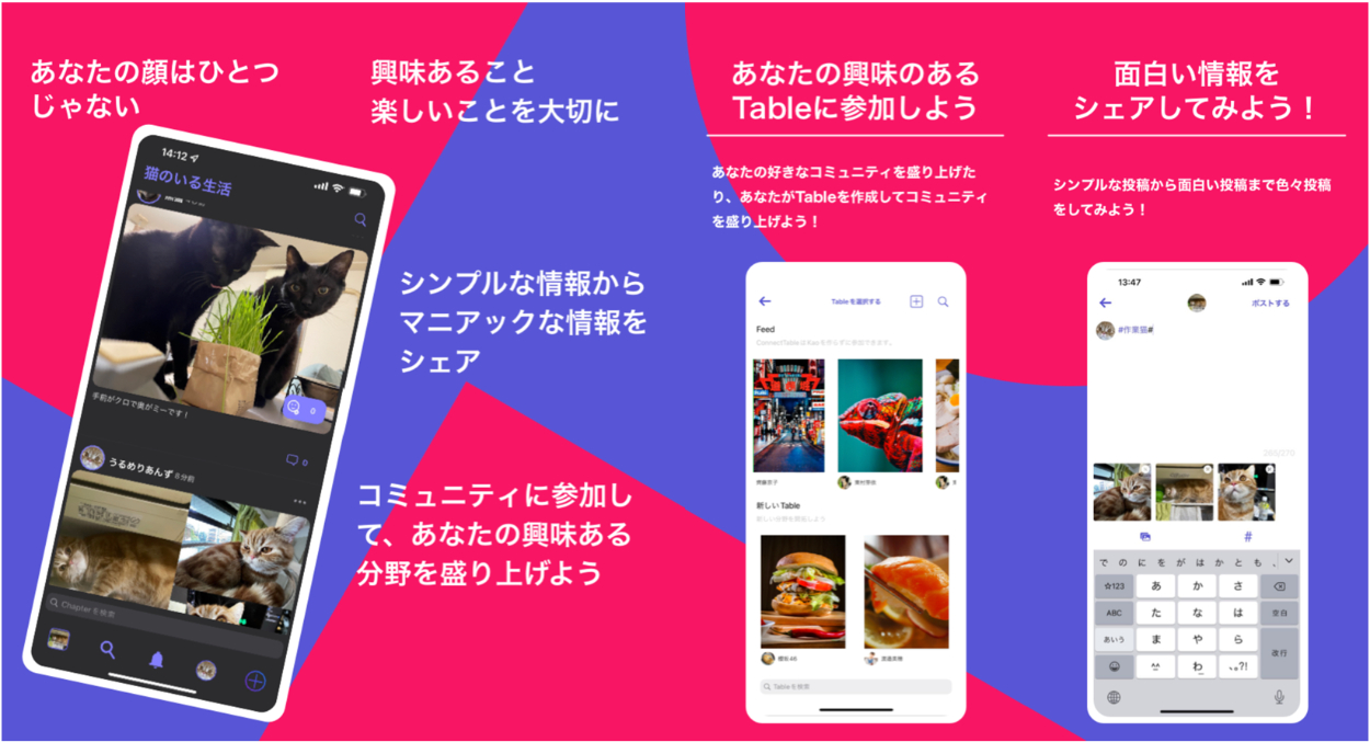 ユーザー同士がコンテンツを生成、かつ双方向に発信・閲覧・共有ができるコミュニティー型のSNSアプリケーションです。