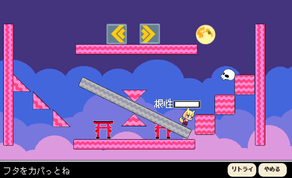 物理エンジンを利用したパズルゲームです。 ユーザーが自由にステージを作成&共有できることが特徴です。 こちらの作品では、グラフィック・プログラミング・作曲を担当しました。