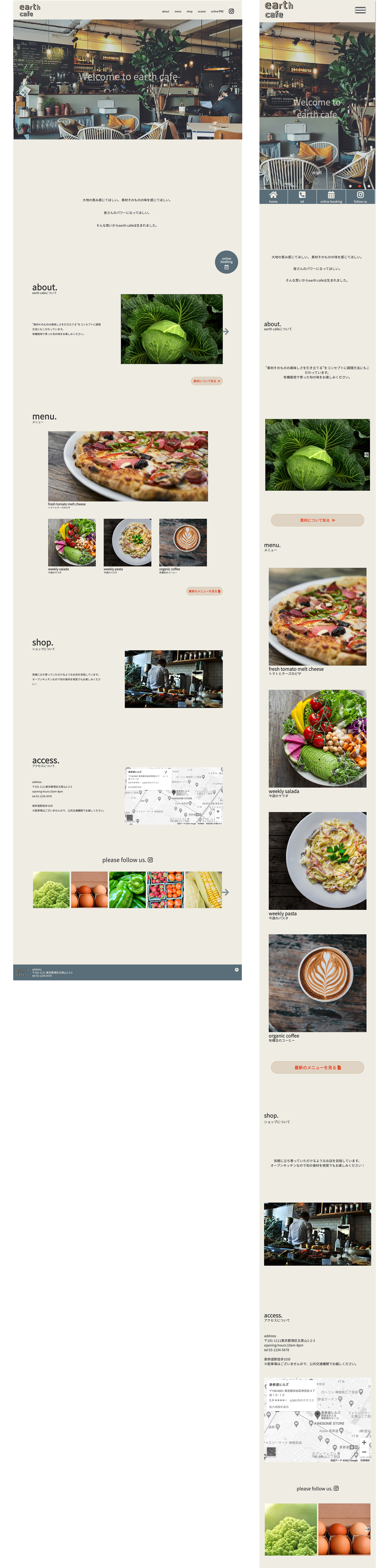 ”日々、忙しい女性に食で元気になってほしい”そんな思いから食材にこだわったカフェをイメージしてサイトを作成しました。