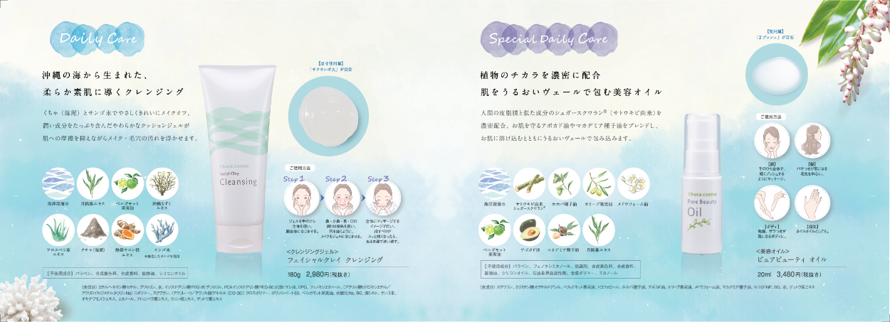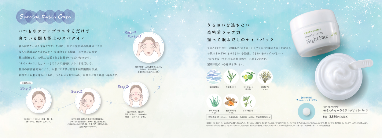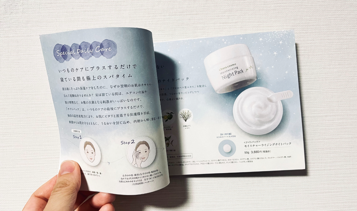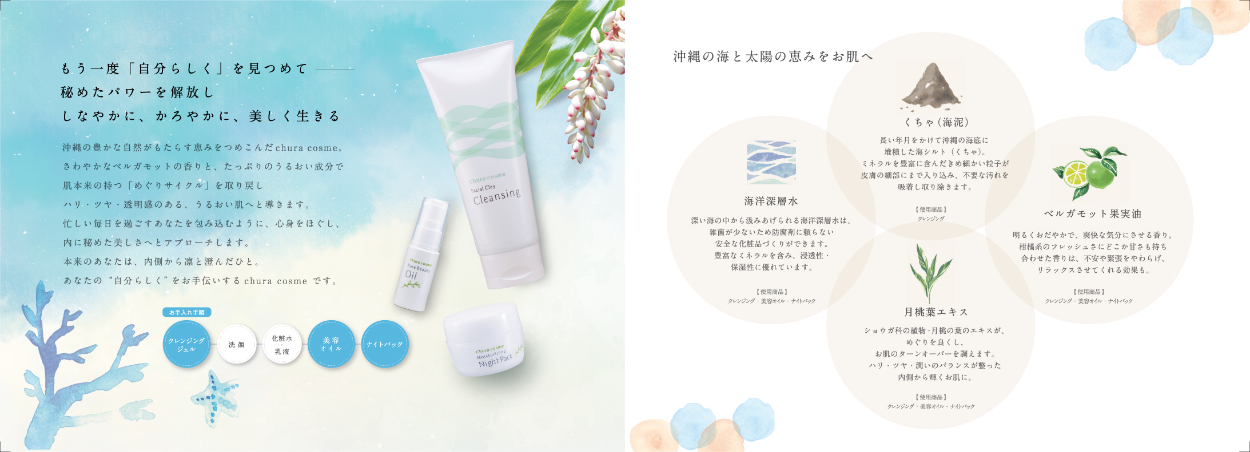 基礎化粧品の新作パンフレットを制作。 デザイン制作を担当。