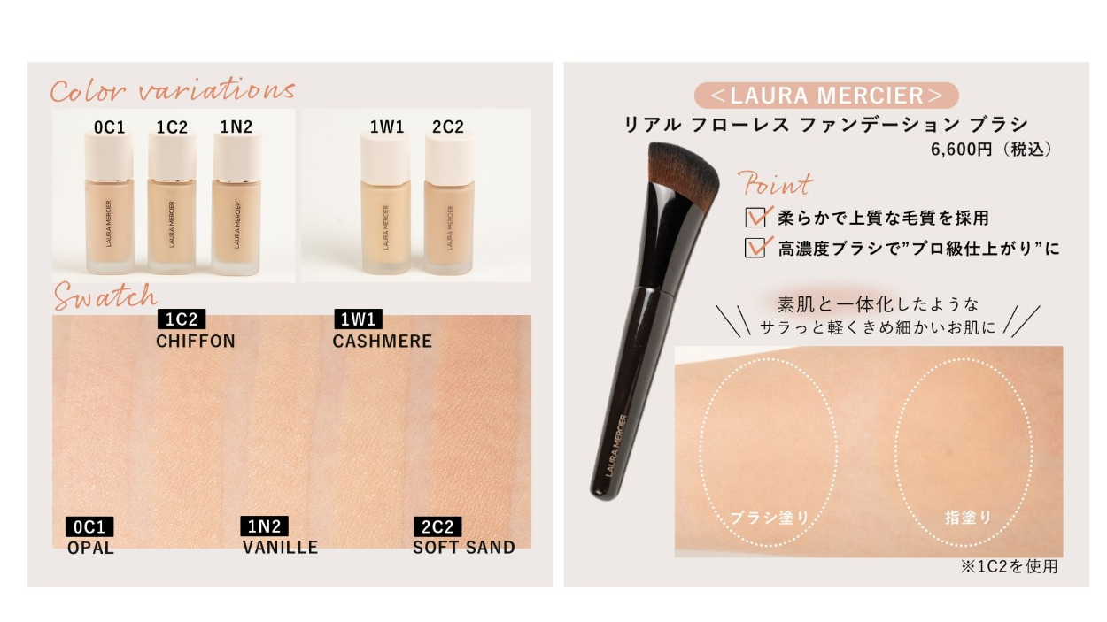 ・仕上がりや質感を訴求したい、という先方の意向があったため、素肌ぽく仕上がる商品の良さが際立つよう、強調したい文字にブラシツールを使ってふんわり感を演出。
