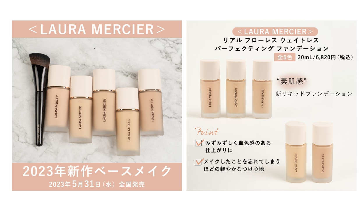 ・アクセントカラーは今回紹介するLAURA MERCIERのブランドカラーをHPで調べ、ピンク色を選定。グレーも濃すぎず淡いターゲット女性が好むグレーにこだわりました
