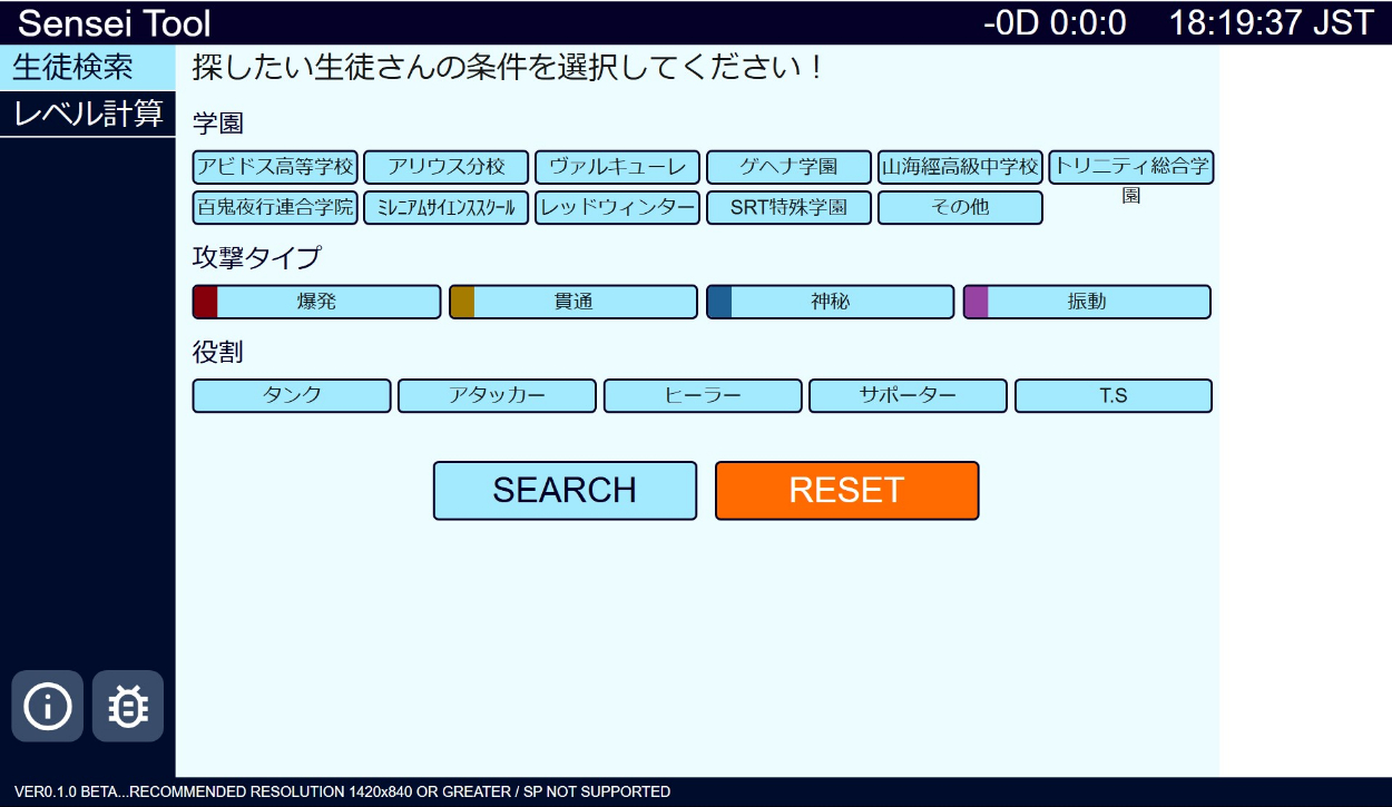 Next.jsを基盤とし、ソーシャルゲーム「ブルーアーカイブ」のレベル上げに必要な経験値の計算や、生徒(キャラクター)の特性を絞り込み検索することができるWebアプリケーション。
