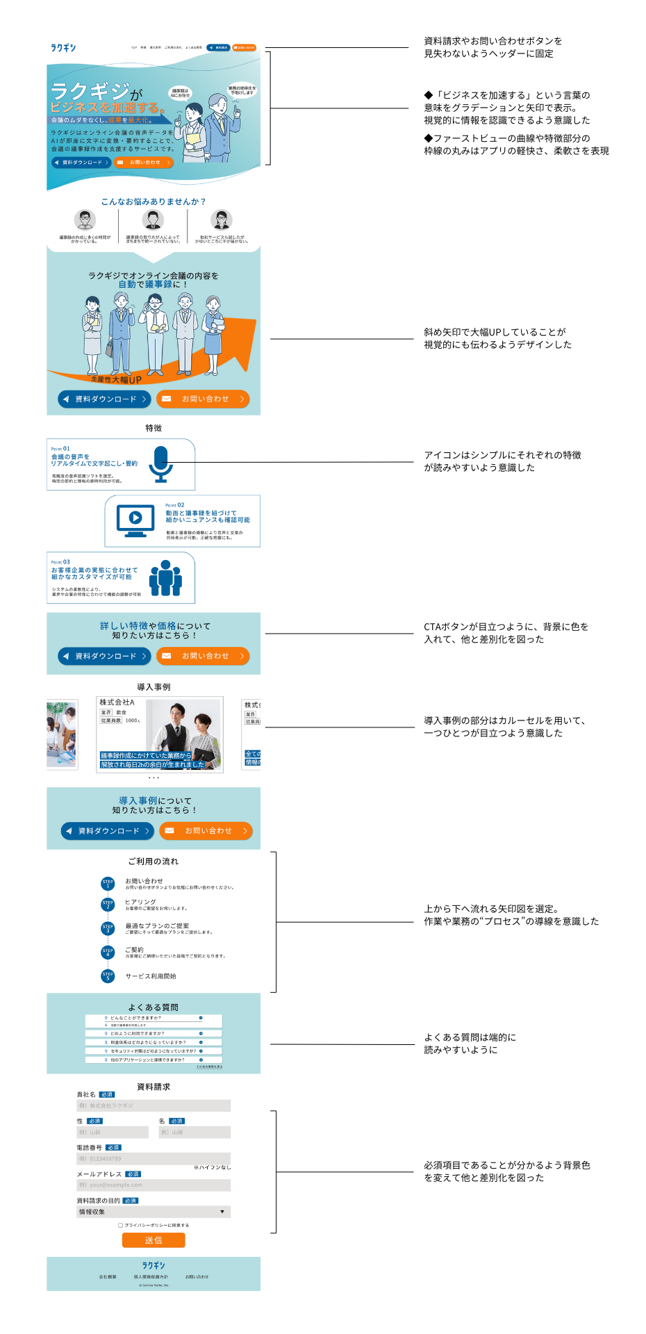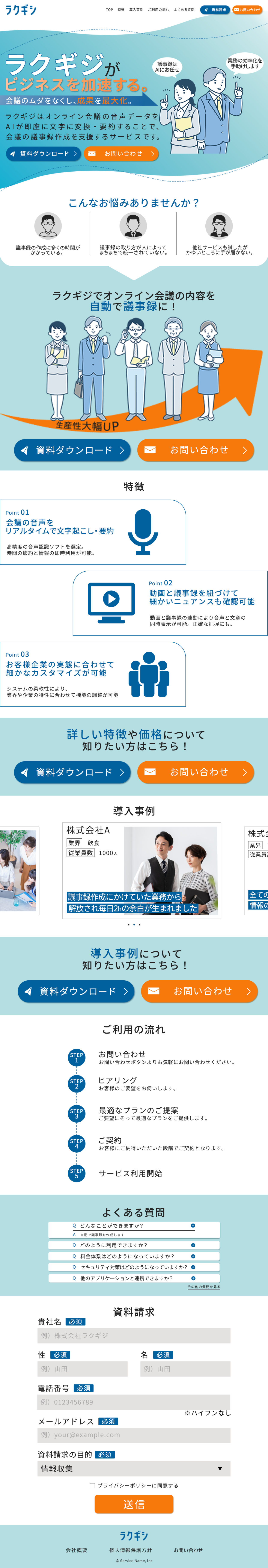 ・サービスの特徴やメリットを伝え、サービスに関心を持ってもらい詳細資料をダウンロードしてもらう