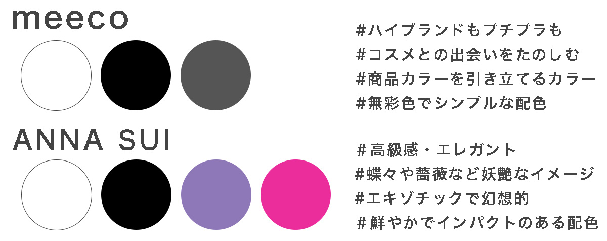 アカウント運用目的(meecoの認知度UP、meeco取り扱い商品(特に新商品・限定品)への興味喚起)の達成のために、meecoおよびANNA SUIのブランドイメージを改めて調査した。