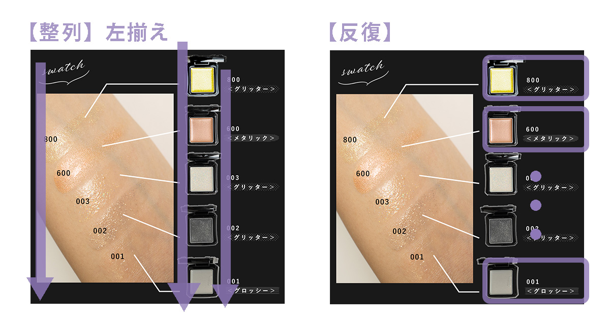 ・整列‥【3枚目・4枚目】雑多な印象にならないよう、基本的に左揃えで配置した。