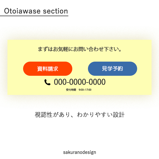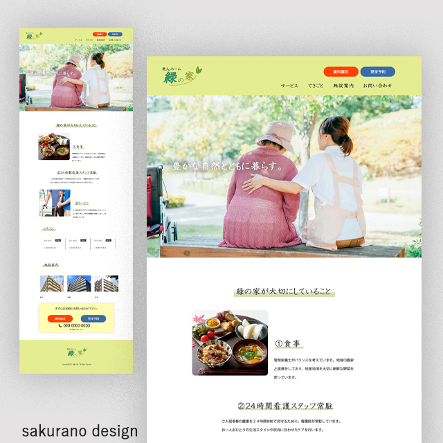 pcに不慣れな方や、小さな文字が見えにくいお客様にも、安心して入居をいただけるように。デジタルネイティブ層とは異なり、電話で実際に声を聴いたり、見学として施設を見ることや、資料請求などで情報を得る事を望むお客様が多いので、わかりやすいボタン配置を心掛ける。