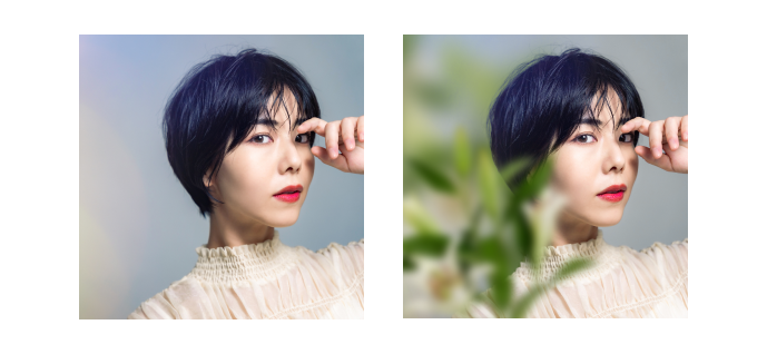 メインの写真はフライヤーの世界観を左右する最も大切な要素なので、「自分らしさを活かす」「骨格理論」というテーマに沿い、黒髪で頭の形が分かりやすいショートカットの女性を選びました。凛とした目線を印象的に仕上げるため、前ボケとしてユリの花をPhotoshopでぼかし配置しました。