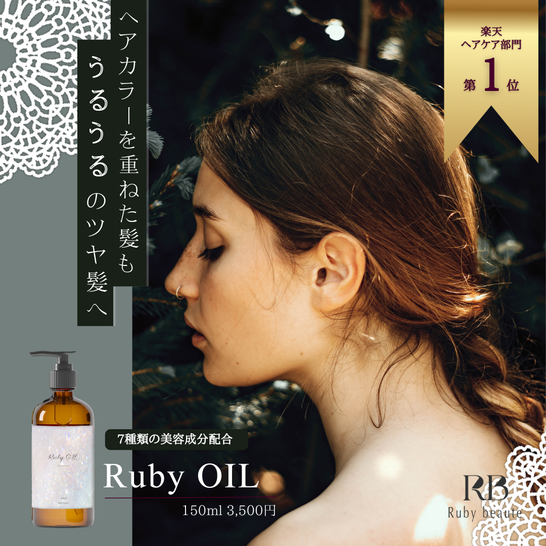 Ruby OILはヘアカラーを楽しむ方のお悩みに寄り添ったヘアオイルとして開発されました。 ヘアカラーで傷んだ髪のパサつきを、潤いのある滑らかなツヤ髪へ導きます。 保湿美容成分を7種類配合しており、傷みのケアはもちろん、カラーの色持ちも良くしてくれます。 普段の生活やリラックスタイムにも気にならない無香料。