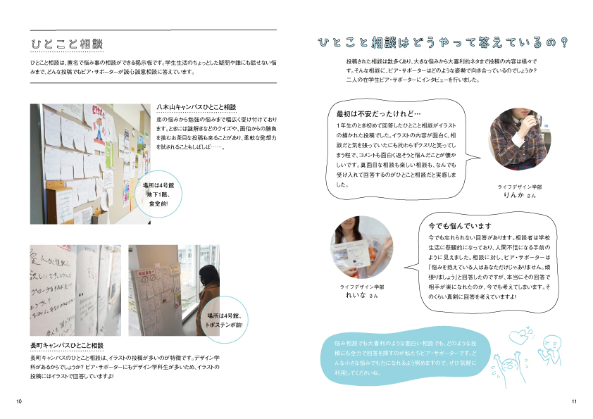 東北工業大学の学生相互支援団体「ぴあ・サポーター」の活動を紹介する目的で制作した冊子。学内にフリーペーパーとして設置する他、他大学との交流会でも紹介資料として配布された。