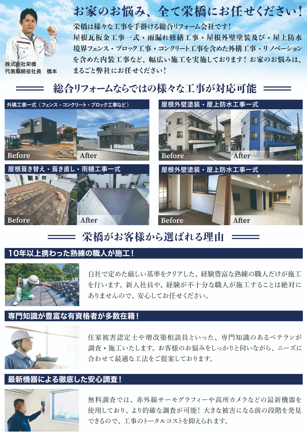 パンフレットデザイン Y I Inhouse Designer OVERVIEW パンフレットデザインを担当しました。 会社のイメージカラーがネイビーなので、信頼や誠実さが感じられる雰囲気にしました。 オモテウラ