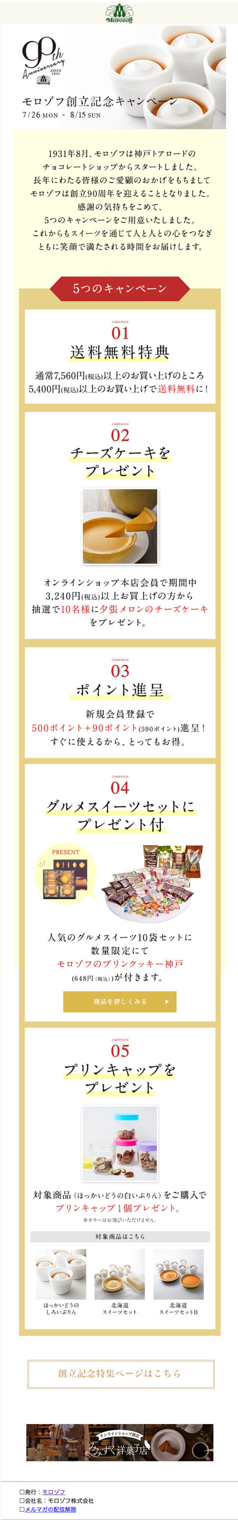 7.【モロゾフ】創立90周年感謝の気持ちをこめて5つのキャンペーンをご用意