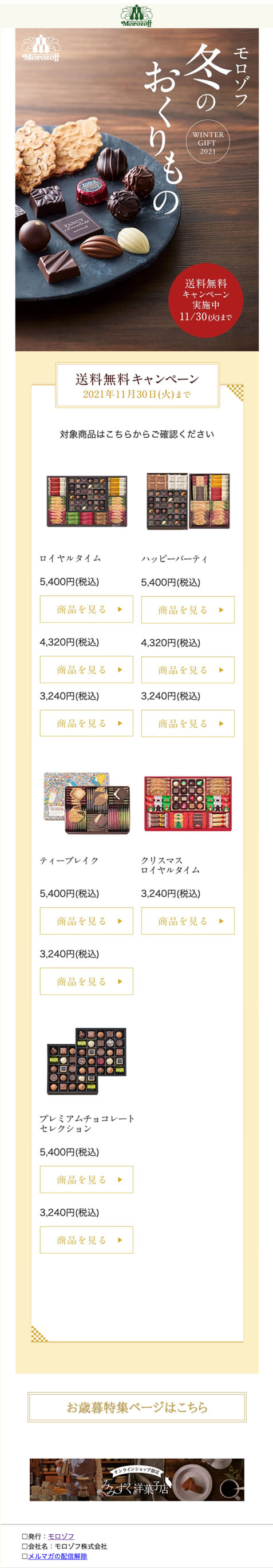 4.【モロゾフ】送料無料キャンペーン実施中!気持ち伝える、冬のおくりもの