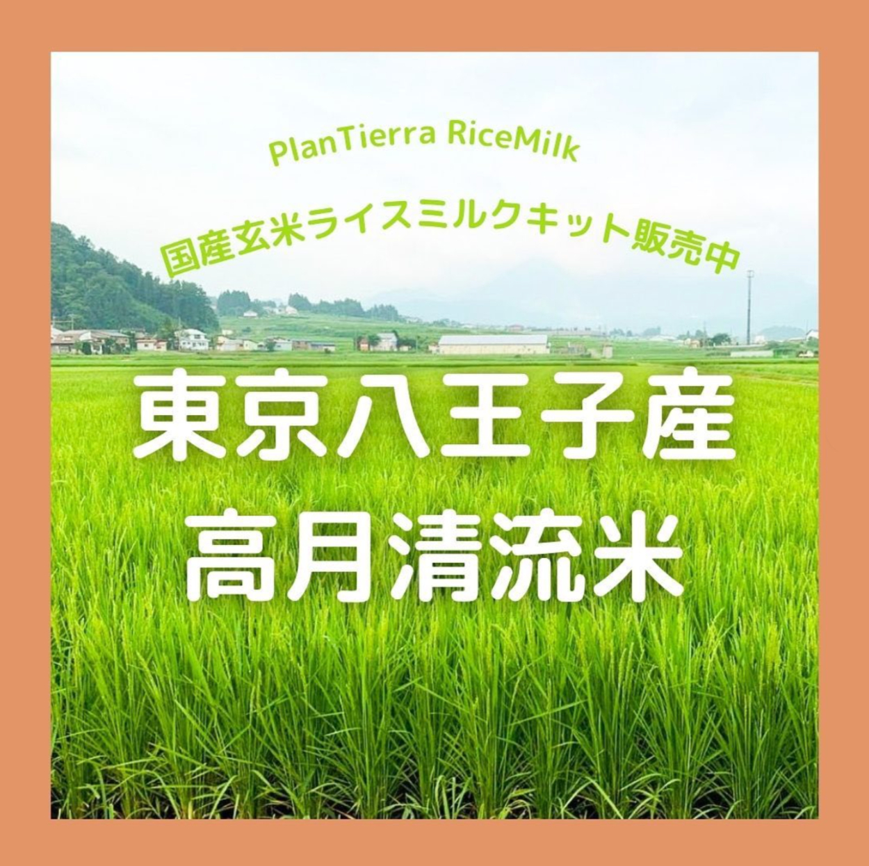 ライスミルクで使用している東京産「高月清流米」とそのお米を使用したライスミルクキットの販売告知。