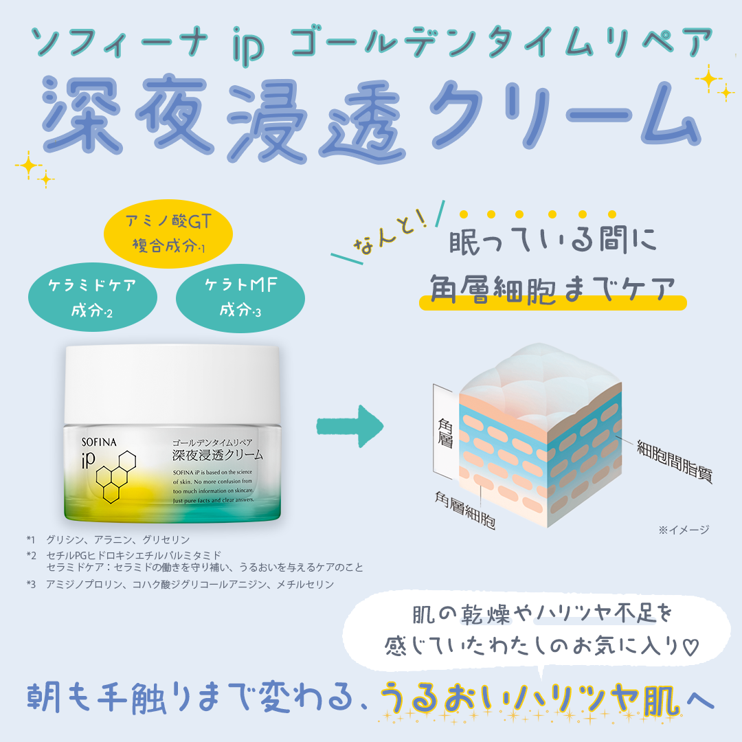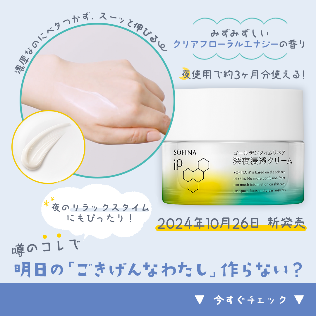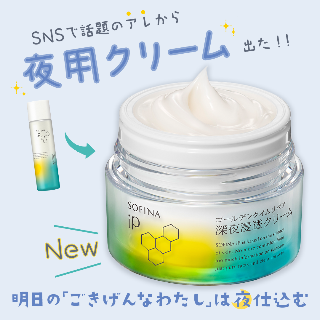 ”SHElikes"【大人の夏期講習】②花王新商品『ソフィーナ iP ゴールデンタイムリペア 深夜浸透クリーム』のSNS広告バナーコンペに参加した際に制作したバナー 2024.9