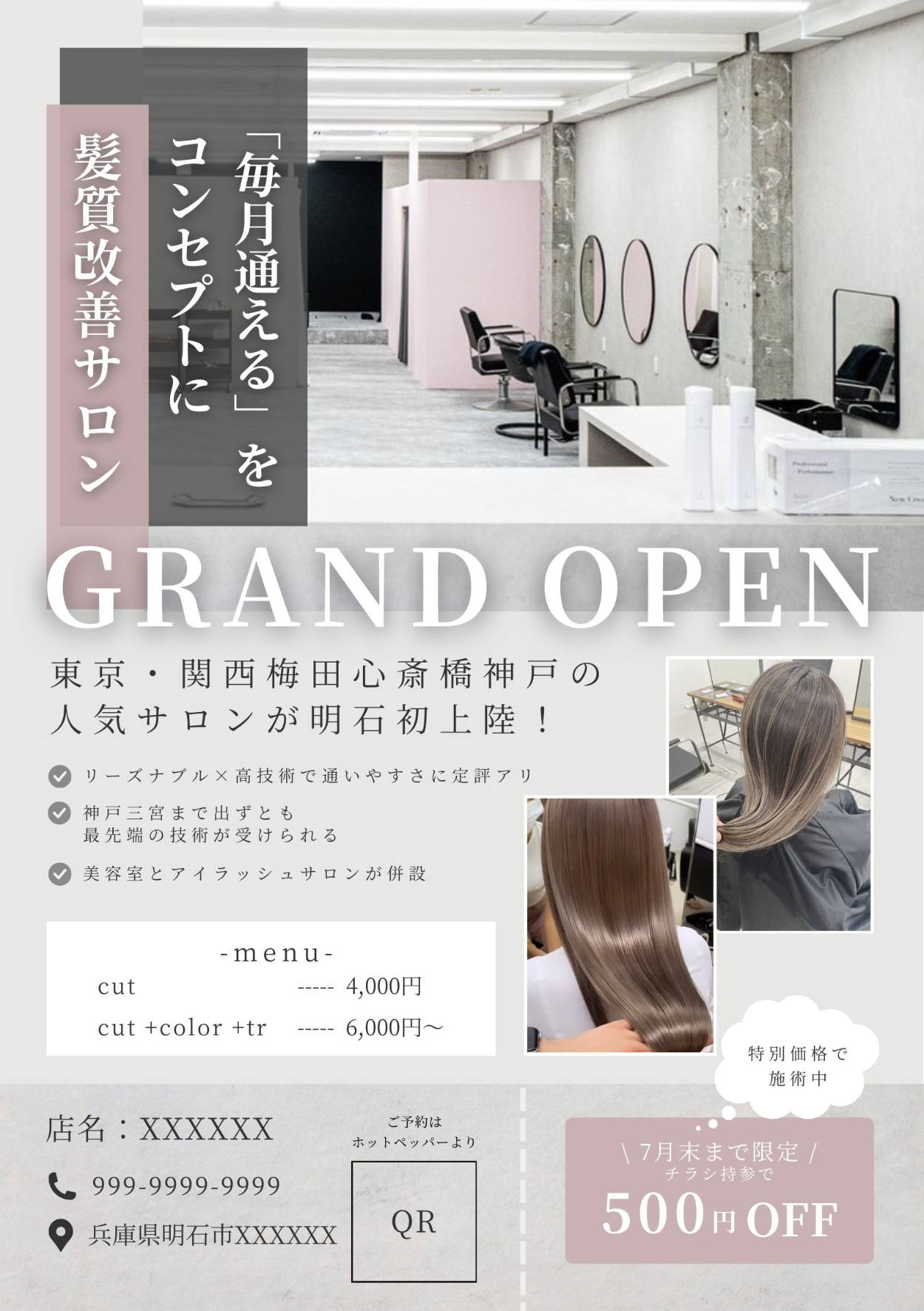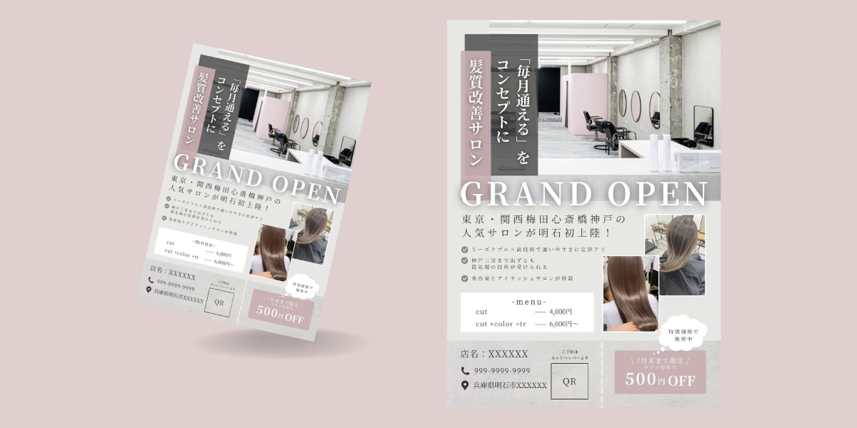 【自主制作】美容室GRAND OPEN用:チラシ作成