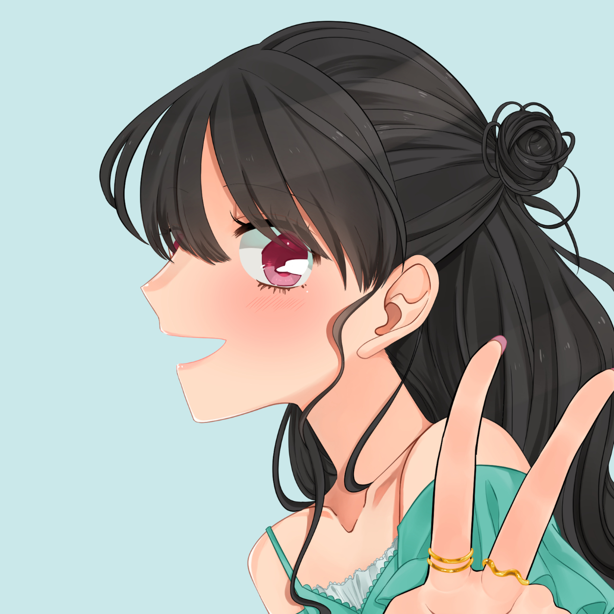兄にアイコンを描いてほしいと依頼されたイラストです。艶やかな黒髪と透けるような肌の塗りの表現にこだわりました。
