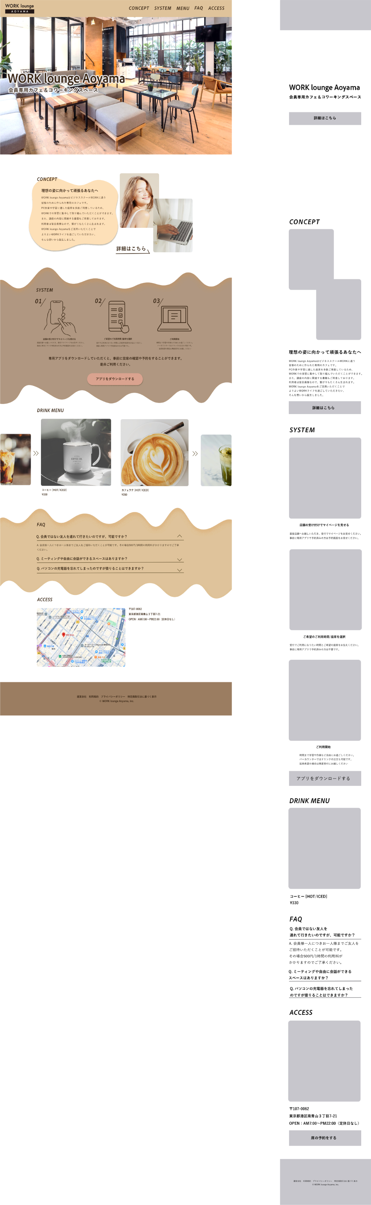 【課題】会員限定カフェ&コワーキングスペース LP制作