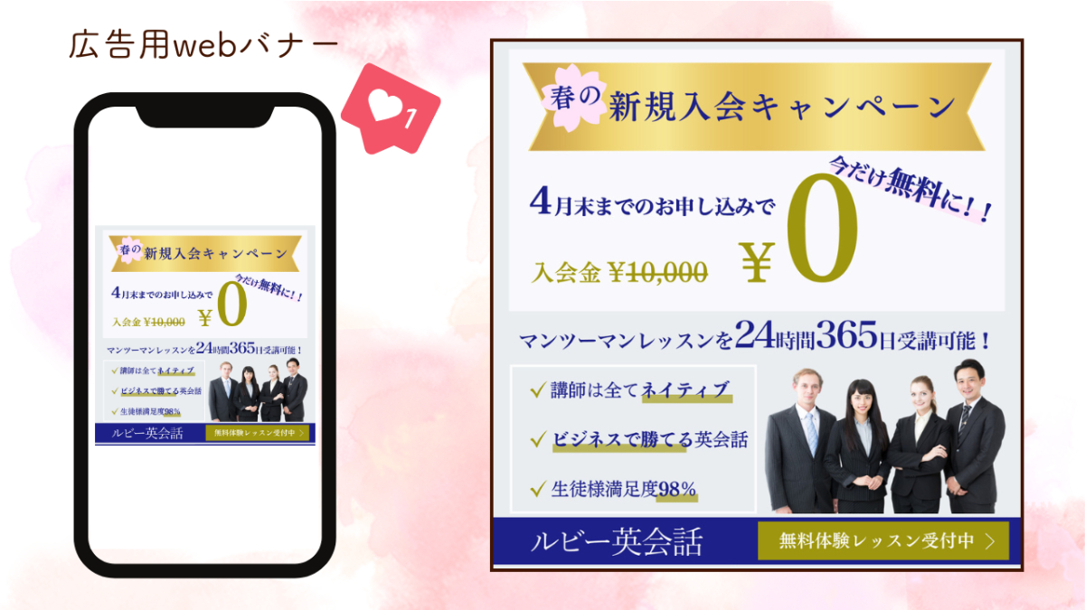 主な受講生は20代〜40代の方が多く、どちらかというと男性の方が多いという英会話スクール様からの依頼。