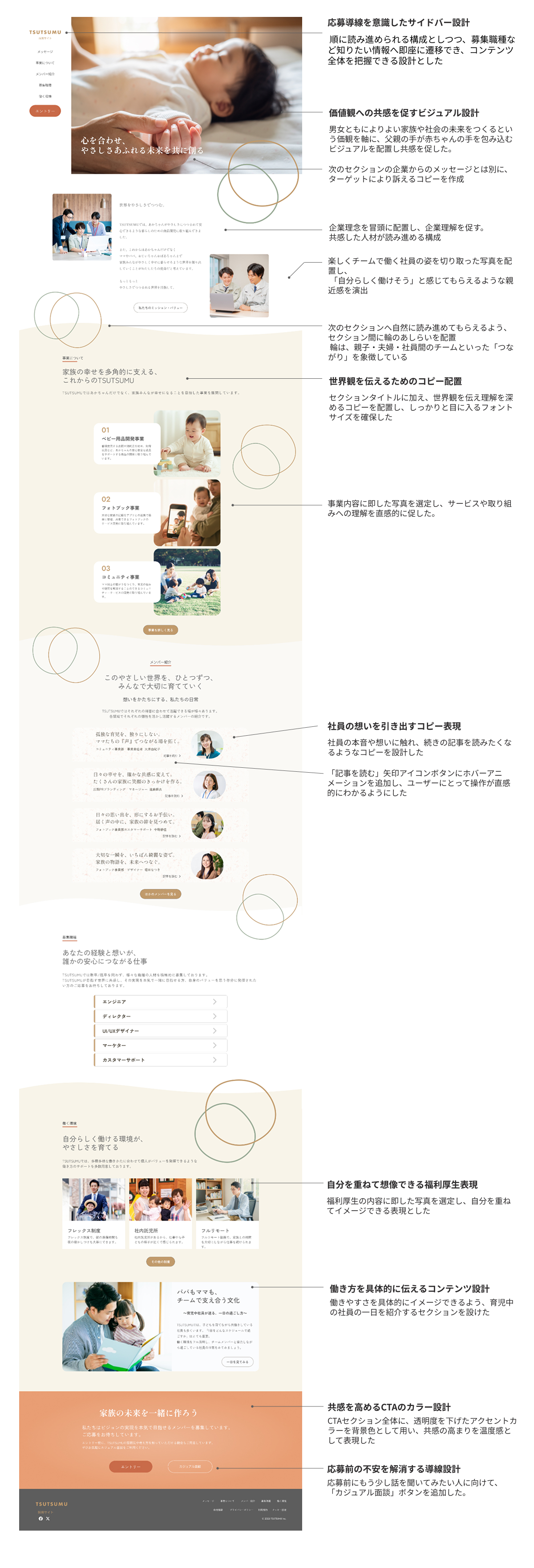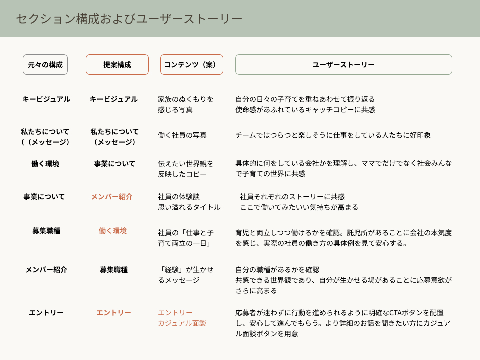 ・ユーザーストーリーを軸に、共感から理解・納得を経て応募へ進む情報設計とした 。