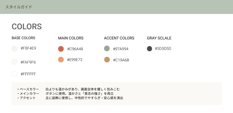 ・メインカラーはCTAなど行動を促したい箇所に限定し、アクセントカラーは視線誘導に用いた 。