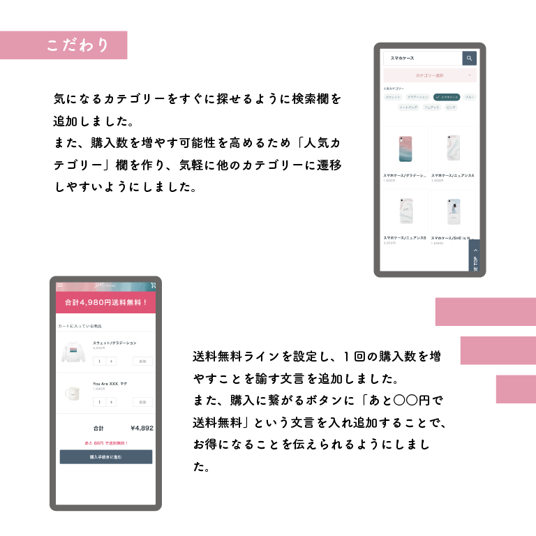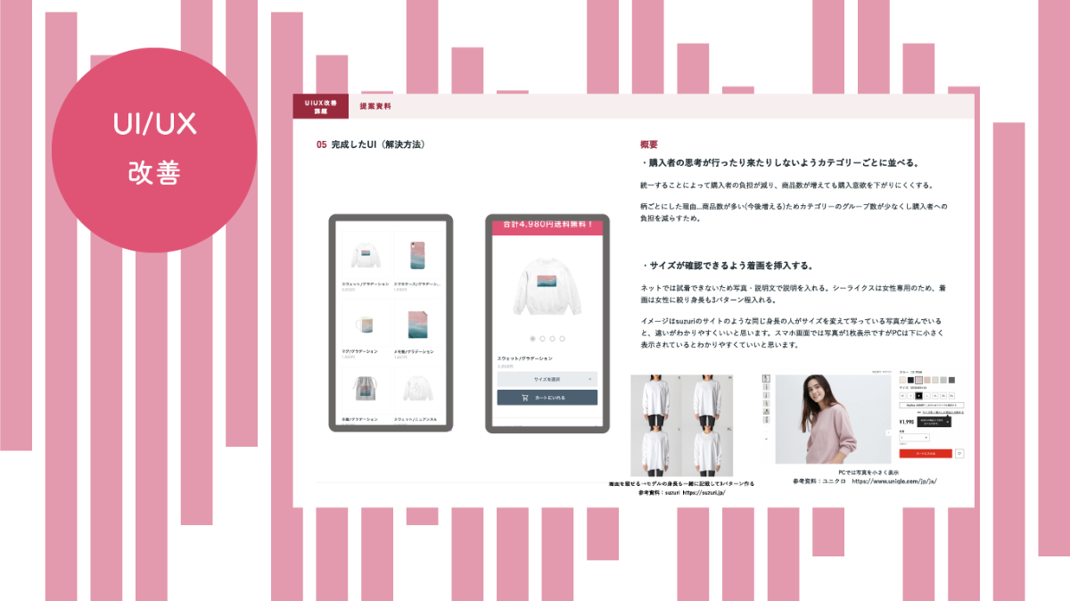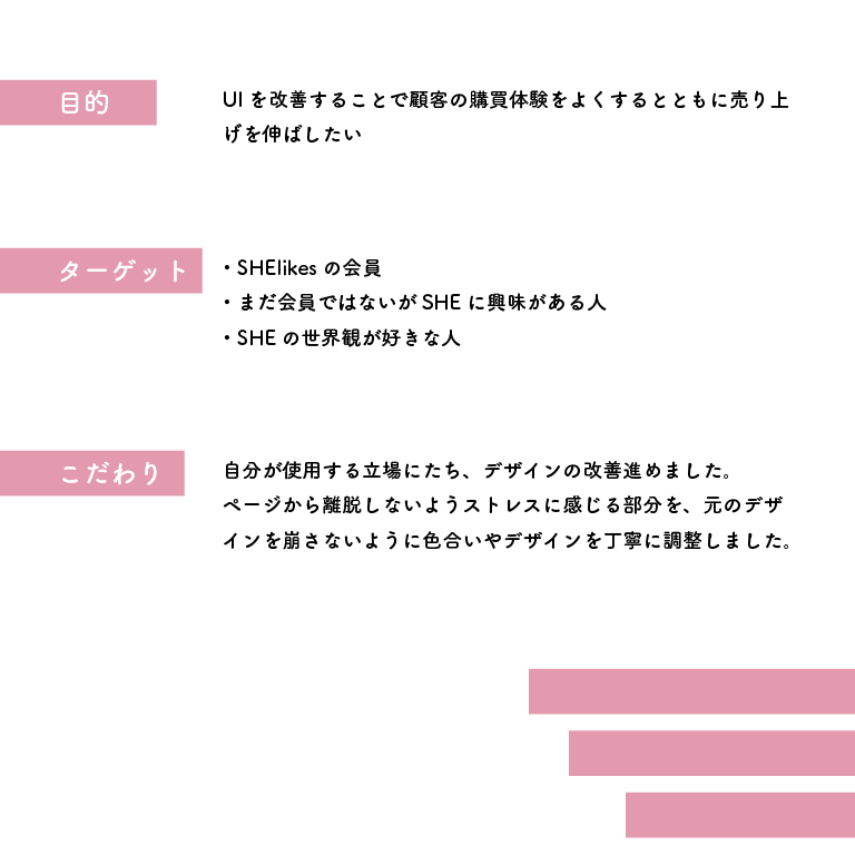 購入者目線になり自分がストレスだと感じる部分やこうあると良いなと思った部分を直していく・考えることが勉強になりとても楽しかったです