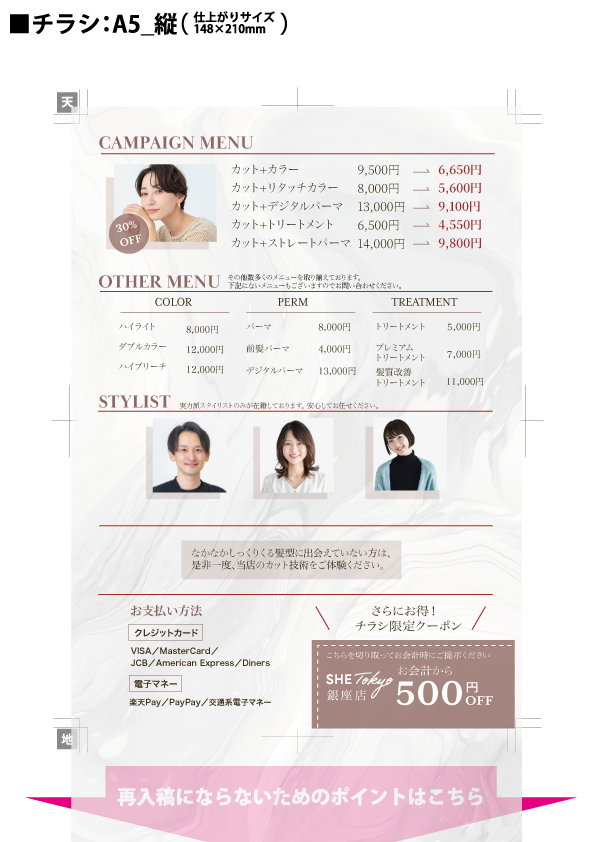 ・表面は引き付ける、裏面は具体的な情報で安心材料を配置するなど、表と裏で役割を分けることで読みやすくなりそうと感じました。