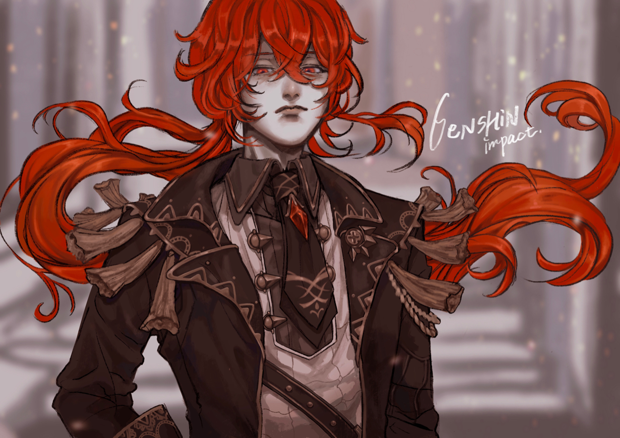 イラストリクエストで描いたものです。魅力的な赤い髪を目立たせつつ浮きすぎないように工夫しました。髪の流れが気持ち良く見えるようにしたところもこだわりです。