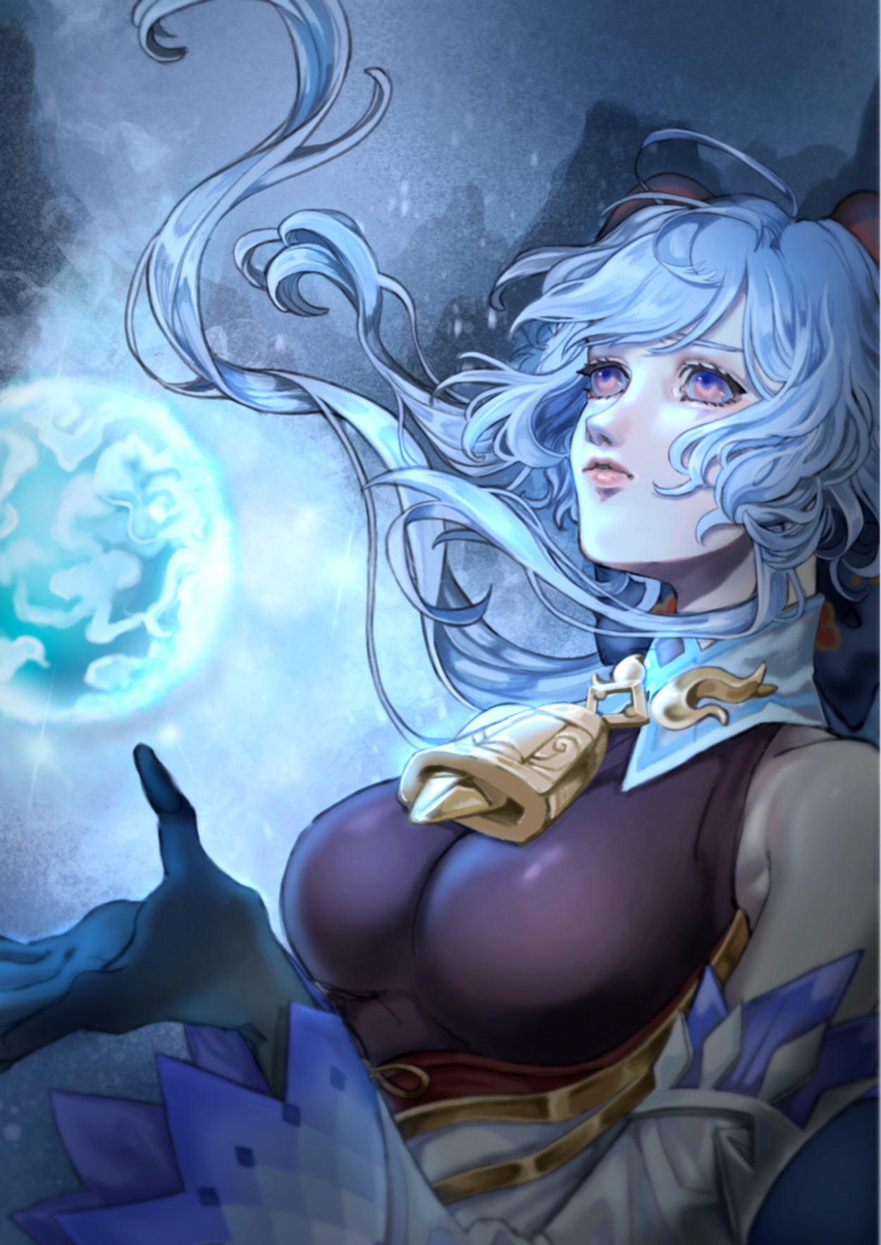 リクエストで原神より甘雨のファンアート。甘雨は氷のキャラクターなので全体的に冷たいひんやりとしたイメージになるようにカラーイメージに気を配りました。また、甘雨は可愛らしい顔つきが特徴なのであまりきつい顔にならないよう意識して描き込みました。
