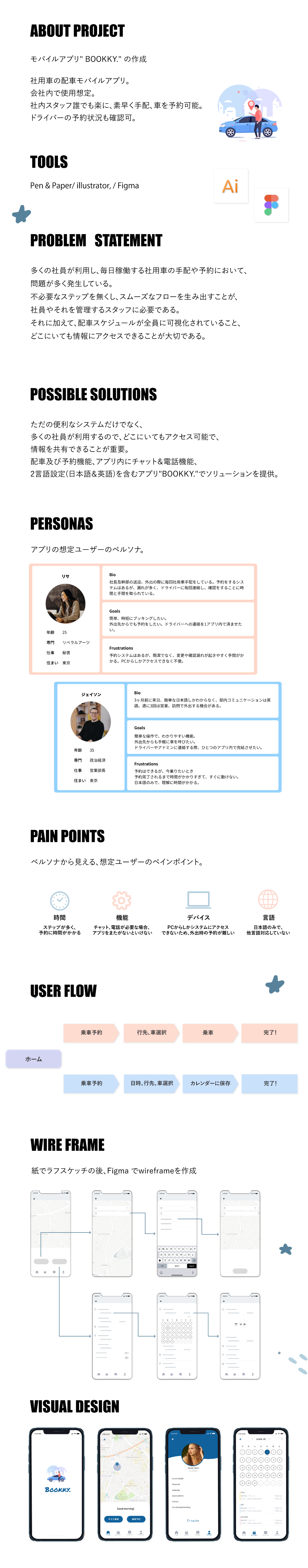 架空モバイルアプリ制作 elabooo OVERVIEW UI/UX :モバイルアプリ"BOOKKY."の作成 社用車の配車モバイルアプリ PROTOTYPE FigmaプロトタイプリンクリンクThanks for reading!