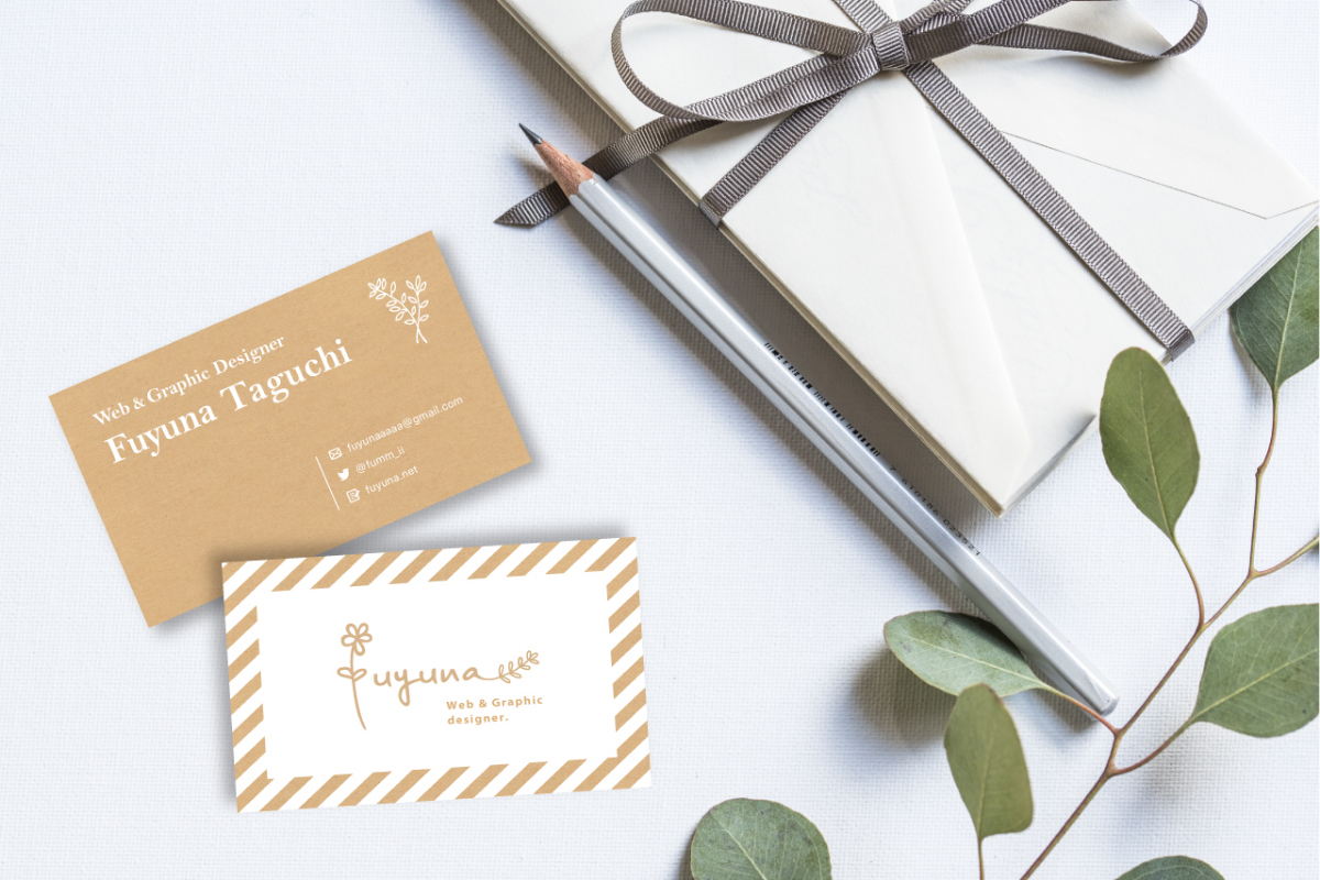 デザイナーとして仕事を始めたことを多くの人に知ってもらうため、また初対面の人とのコミュニケーションツールとして活躍してくれる名刺を制作しました。初めてデザインした名刺です。コンセプトは「素材の良さを活かしたちょっと特別な名刺」。
