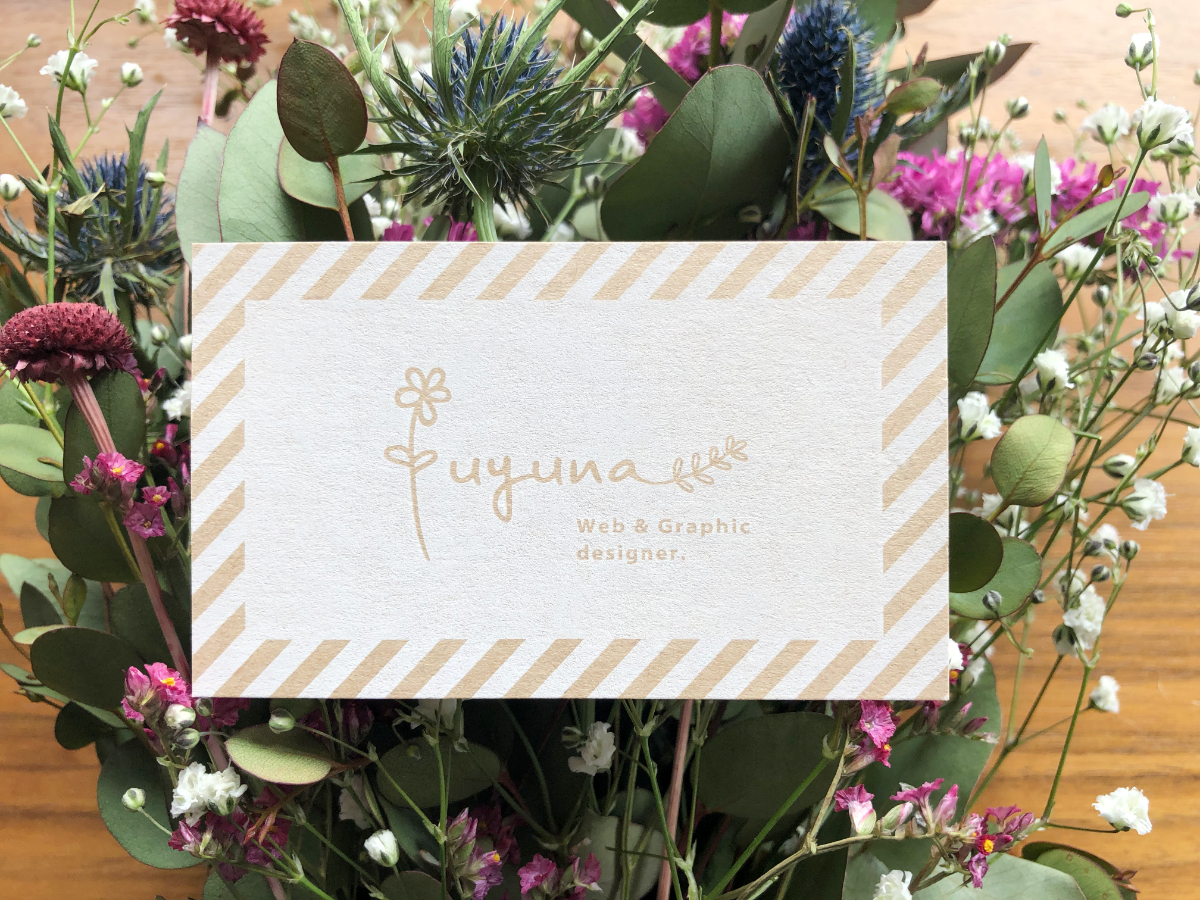 - 一般家庭のプリンタでは再現できない白インクを使うことで「ちょっと特別な感じ」がする名刺にしました。