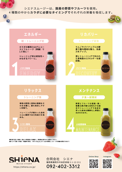 ・既存のフライヤーには、商品画像はなくパっと見た時にどの商品の説明をしているのかわかりづらかったので、それぞれ商品説明の隣に実物写真を追加しわかりやすくしました。