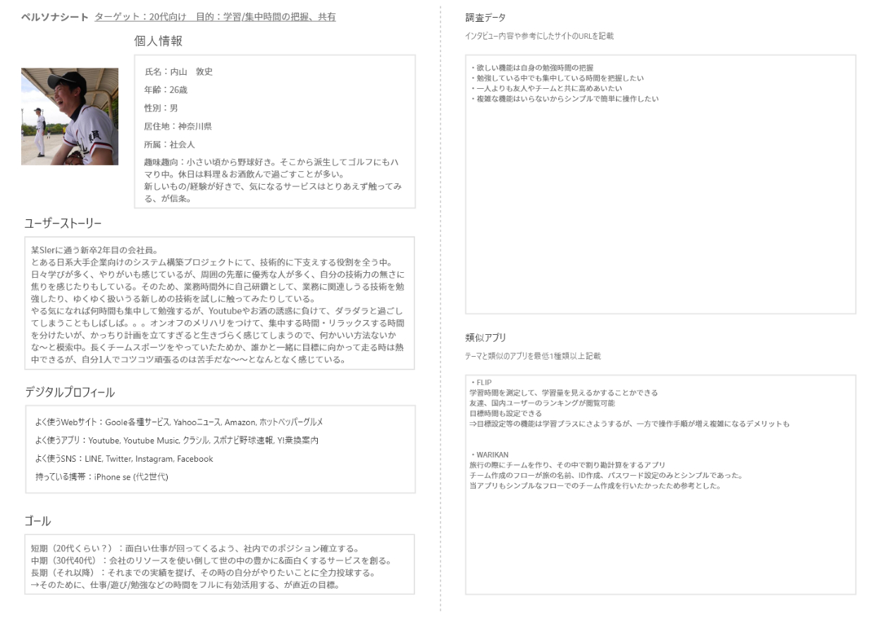 友人をペルソナとして、彼の困りごと、課題を解決するアプリを作成することを目的としました。