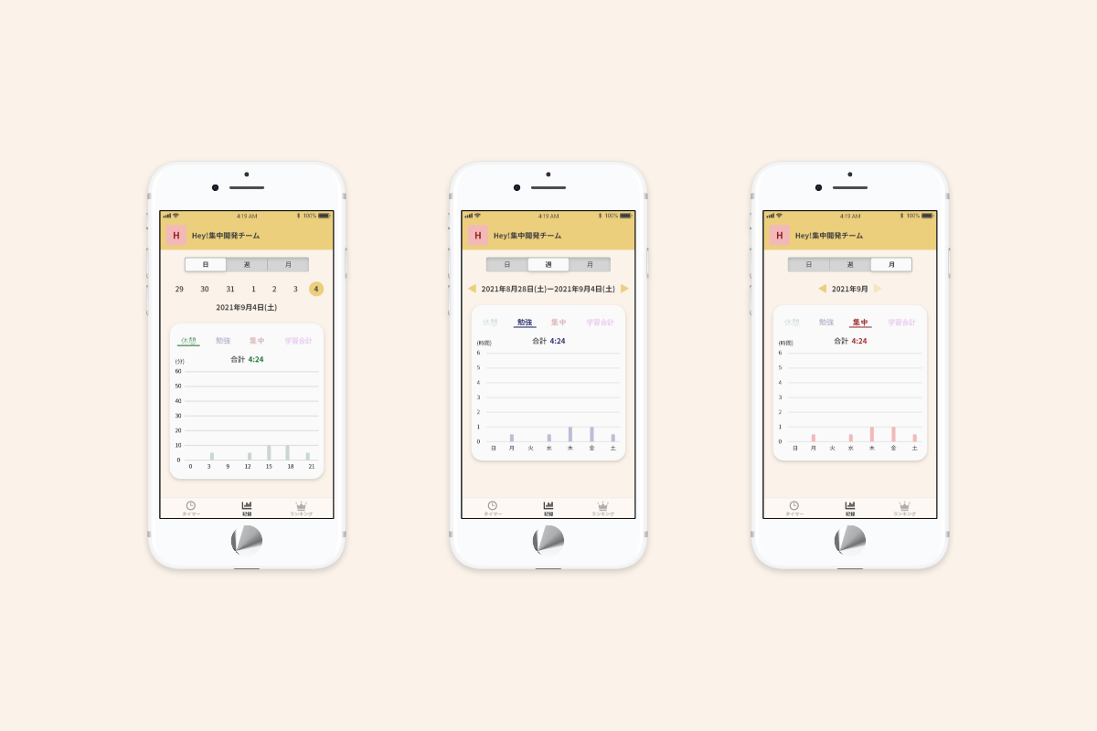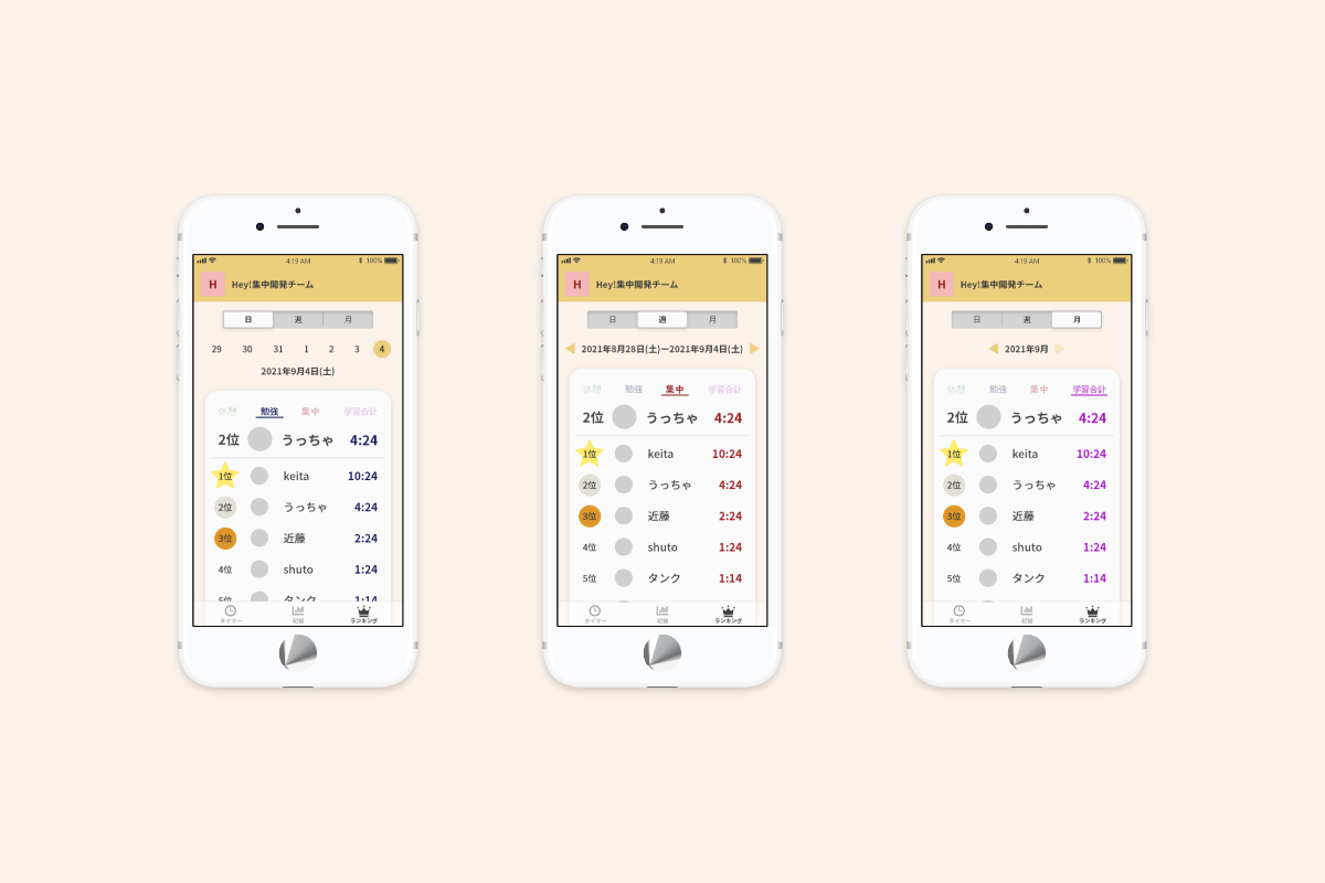 ・休憩/勉強/集中/学習合計ごとに記録を確認して学習習慣を改善