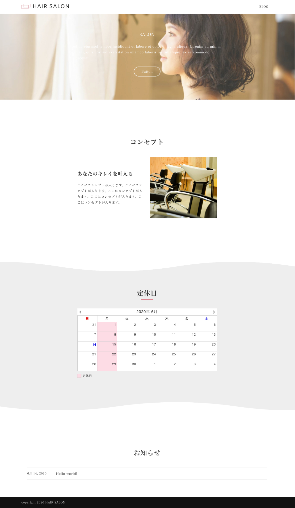 "美容院SALON"のデモサイトを制作しました。