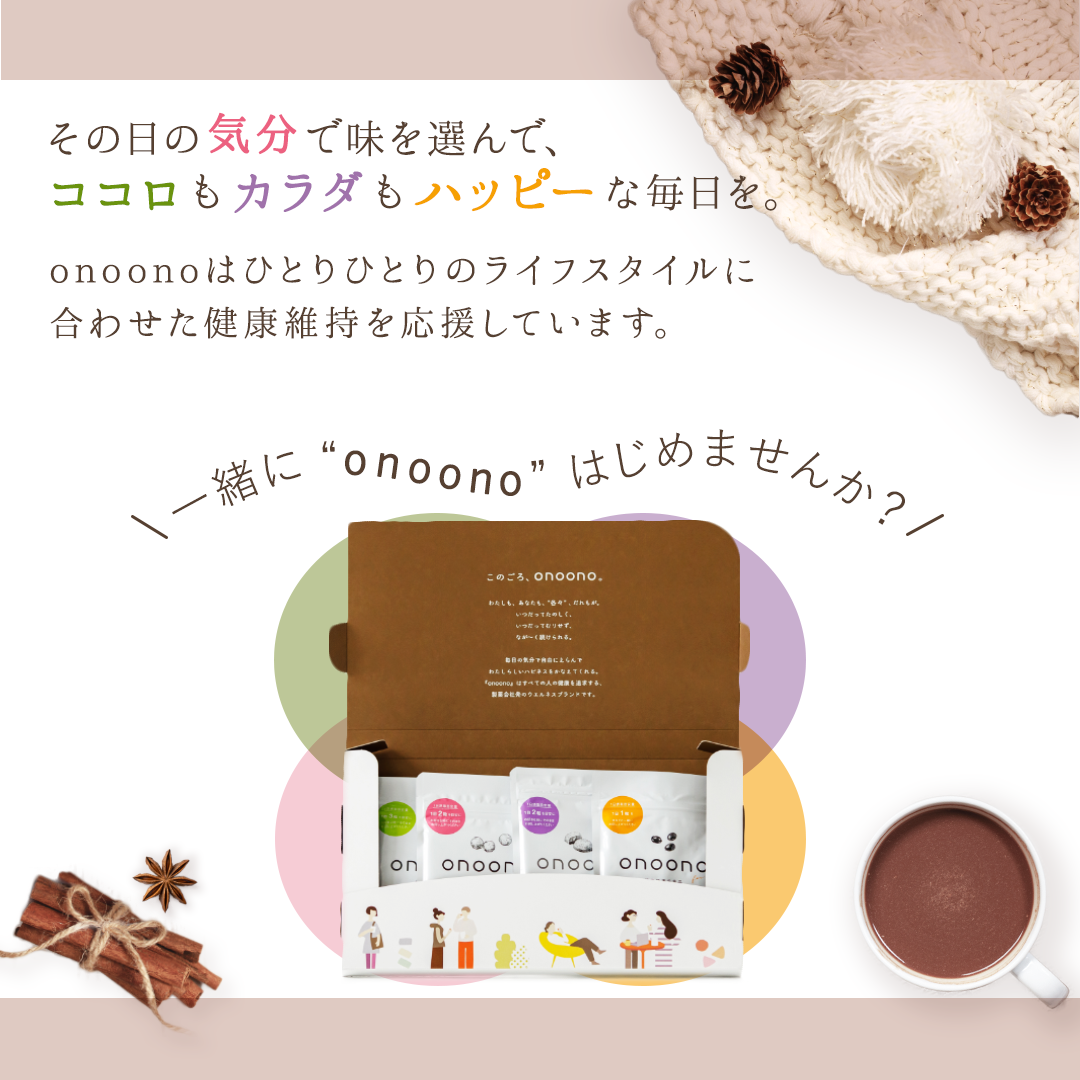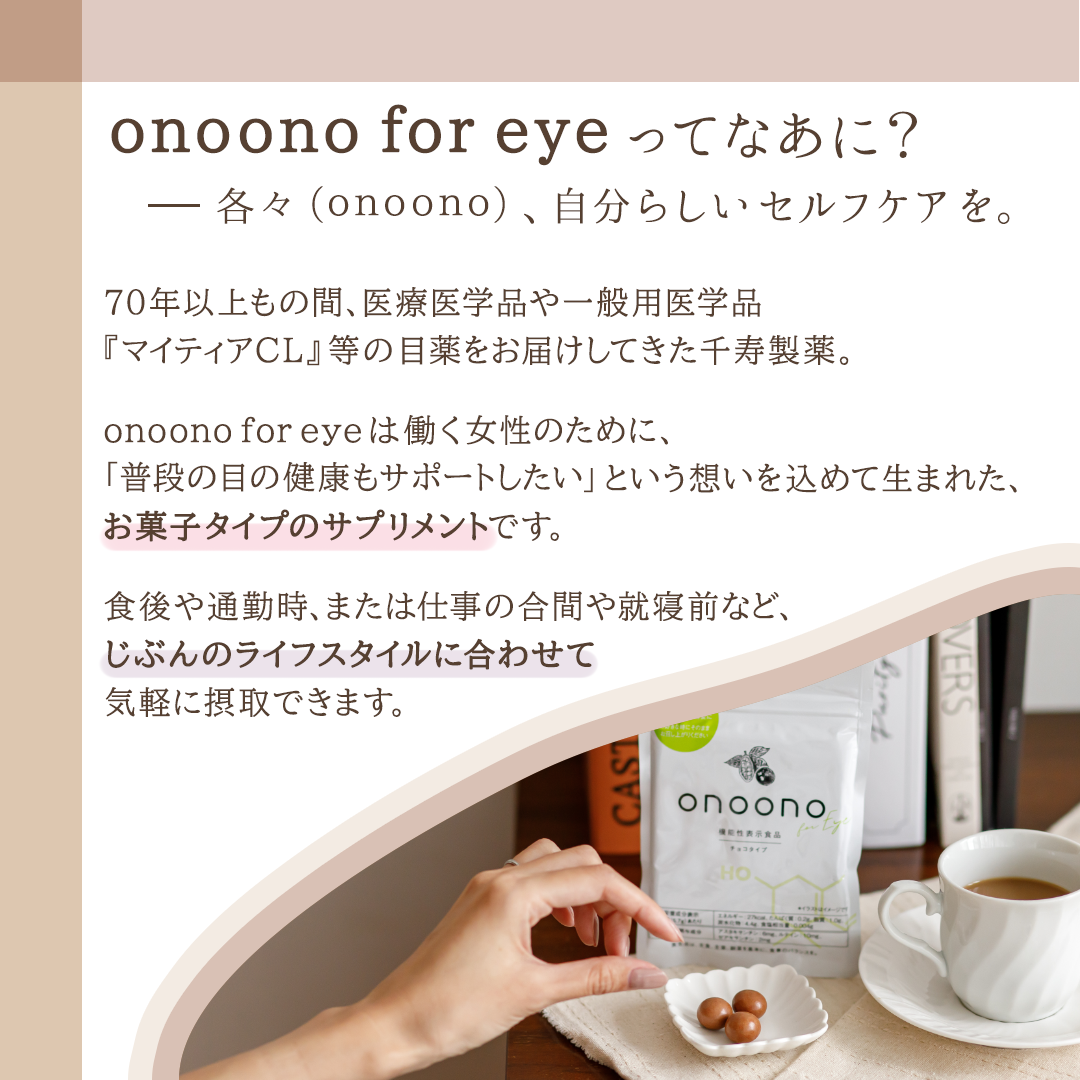 「一緒に”onoono"はじめませんか?」という最後のフレーズは、サプリメントに手が届かない方に向けて考えました。一緒と各々は一見矛盾していますが、各々のペースで続けることを応援する気持ちを表現するために、このフレーズで締めくくりました。