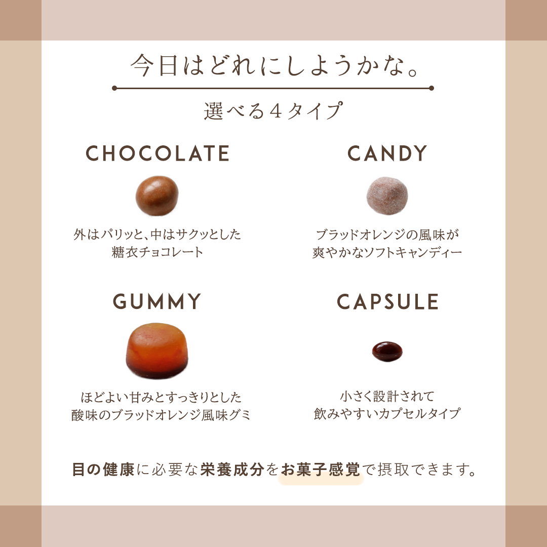 2枚目 商品認知。千寿製薬様のお菓子タイプの目のサプリということを認知。