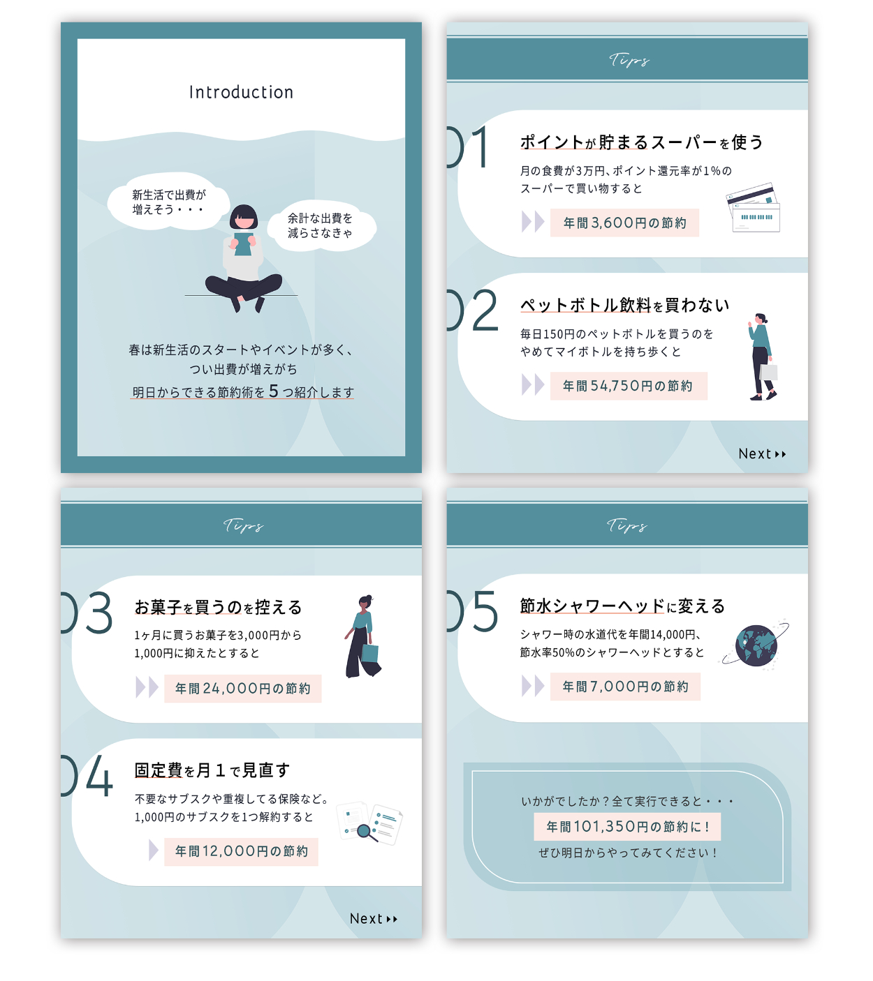 内容:読者に「実際にこんなに効果があるんだ」と思ってもらえるように節約額を記載。