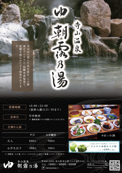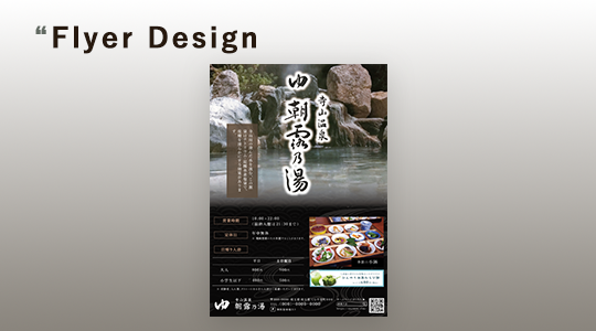 温泉の湯気が立ち上る露天風呂や、食事処で提供される見た目も楽しい料理の写真を使い、見る人が「行きたい」と感じるようにしました。