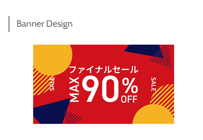 さまざまな商品があるため、特定の商品だけを感じさせるのはNG。文字だけでお得感やワクワク感を伝える。色やフォントは特に指定なし。