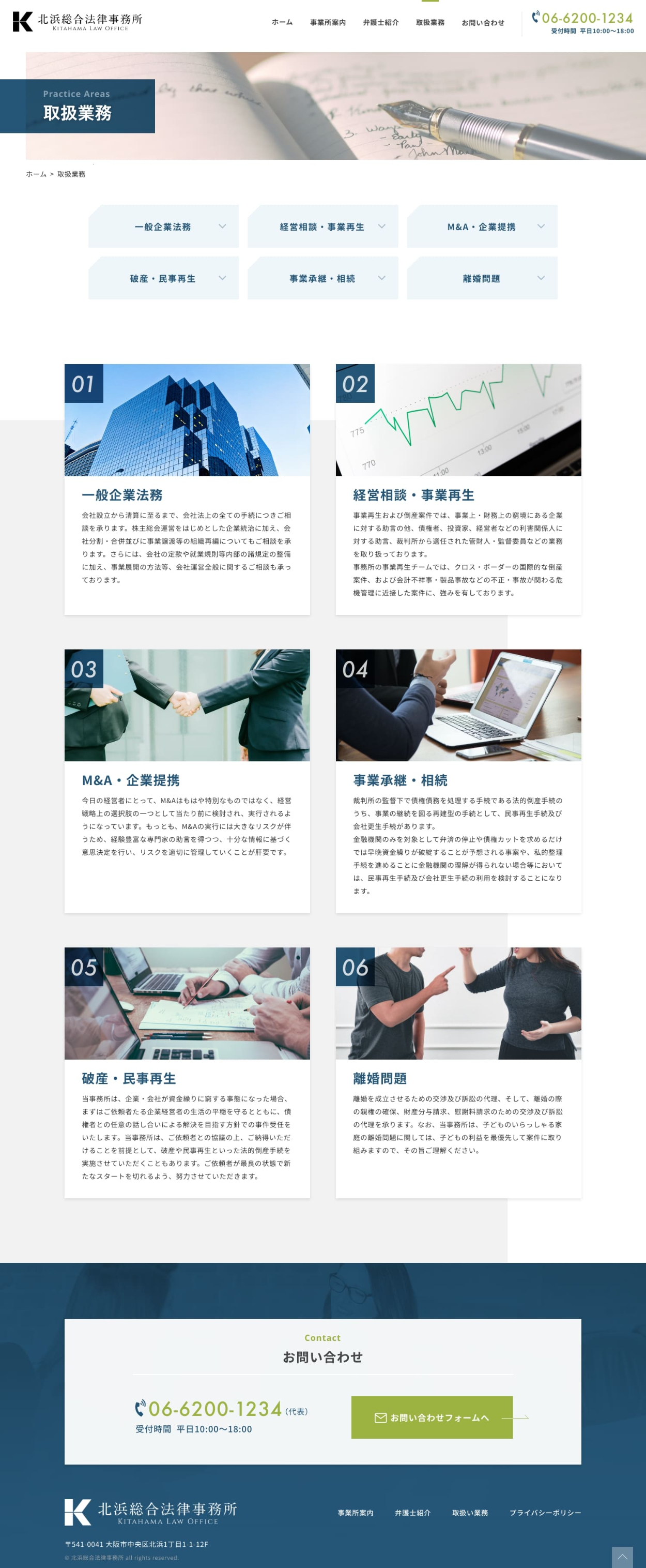 架空の弁護士事務所のコーポレートサイトのデザインを作成しました。「信頼感」を感じてもらえるデザインを目指しました。