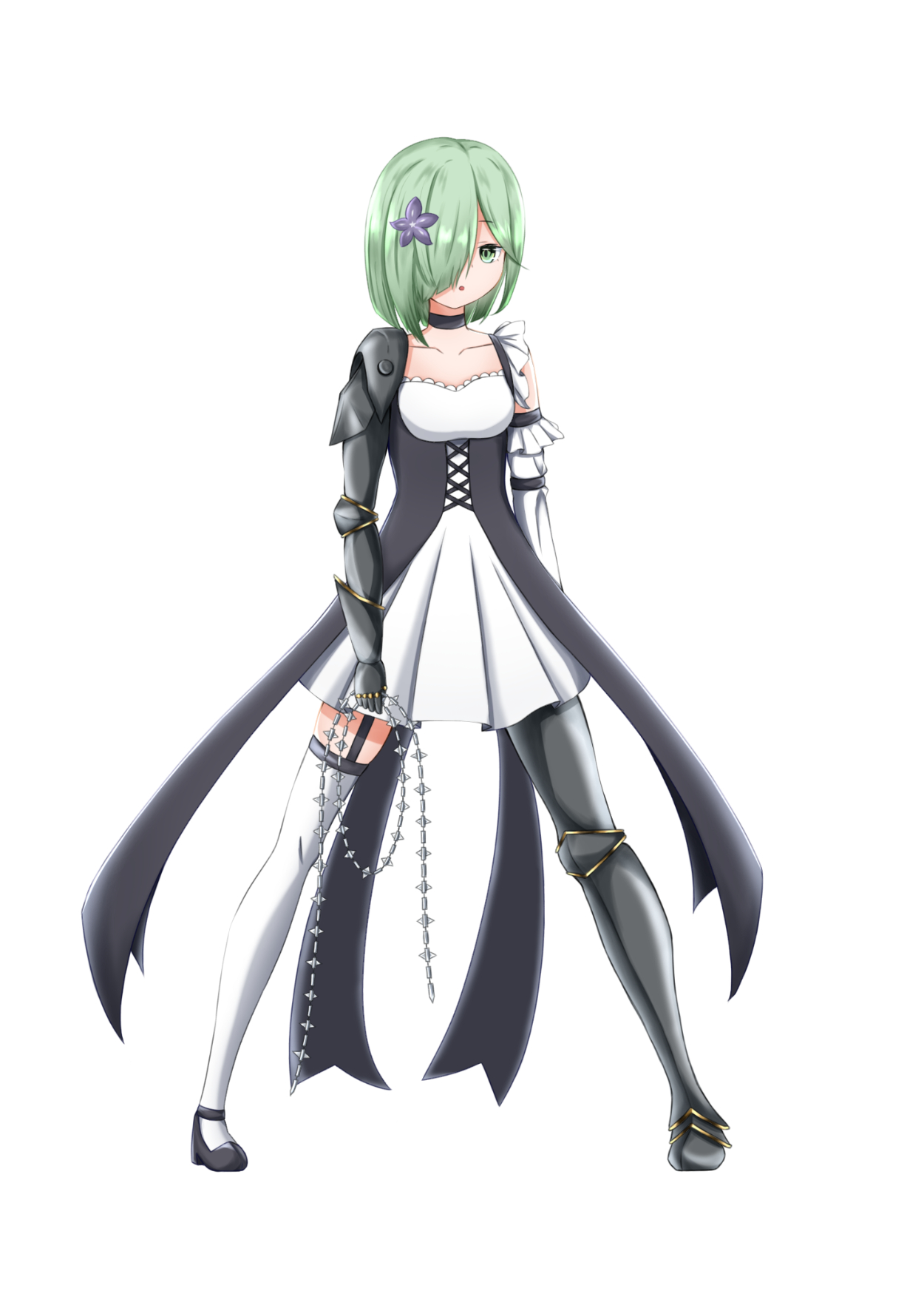 鎧・義肢のようなものを描いた経験がなく、挑戦の意味で描きました。こだわった点は鎧である義肢の質感、鋼に見えるように塗りました。キャラクター設定が「四肢の半分が無い状態で現在の主に拾われた」なのでメイド服を少しアレンジし、戦闘メイドとしてデザインしました。他にも装飾の花はキキョウで、花言葉に「永遠の愛」「誠実」などがあり、このキャラクターの設定に合わせました。