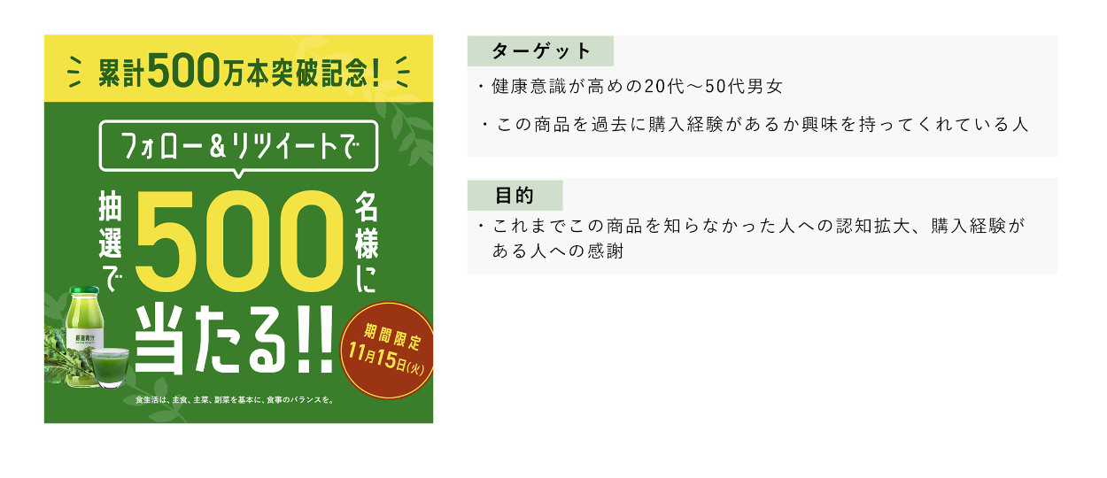 見本バナー以外で、「中央に数字が大きく配置」・「文字が多く印象的な写真を使用」されている類似バナー(引用元:https://www.kagome.co.jp/campaign/ysline/ )を選定し、同類のバナーでよく使われているデザイン特徴を観察した。