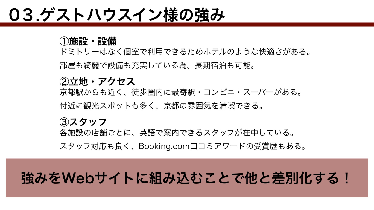 ゲストハウスサイトの提案書