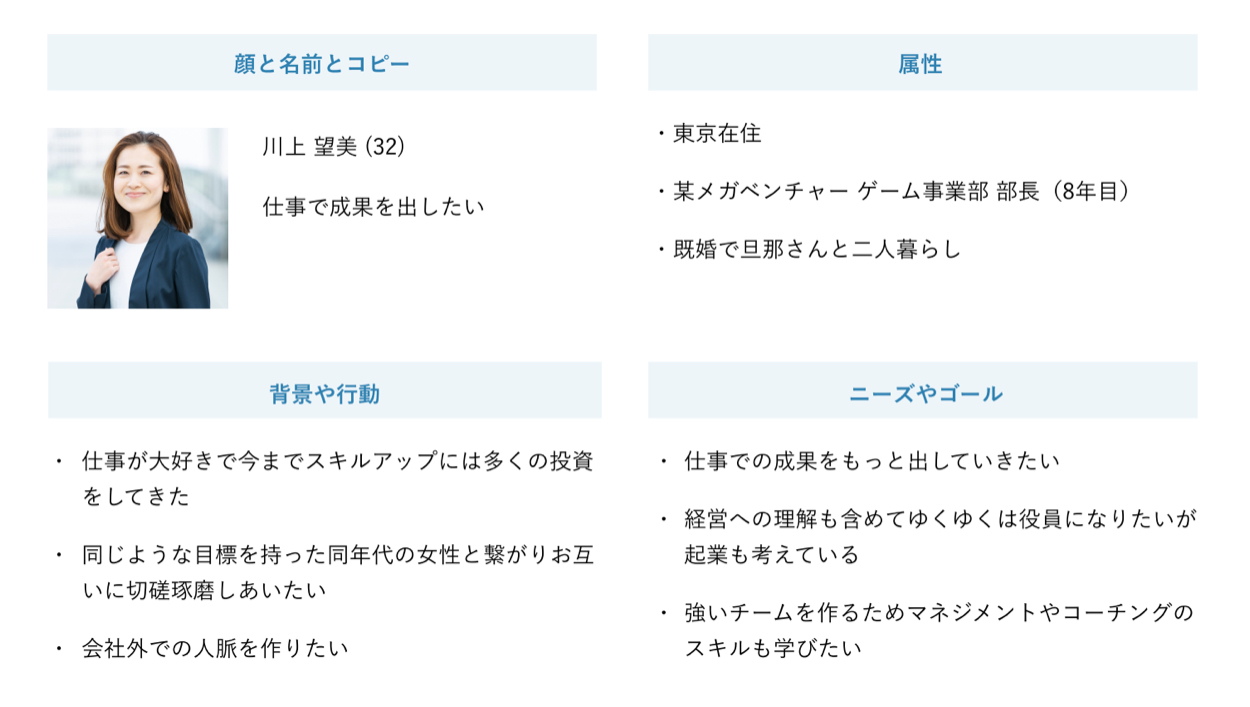 女性向けのビジネススクールを展開している。会員は20~30代の女性が多く、キャリアアップのためにビジネススキルを学び、さらにそのアウトプットの場として定期的にビジネスコンテストなどのイベントも開催されている。